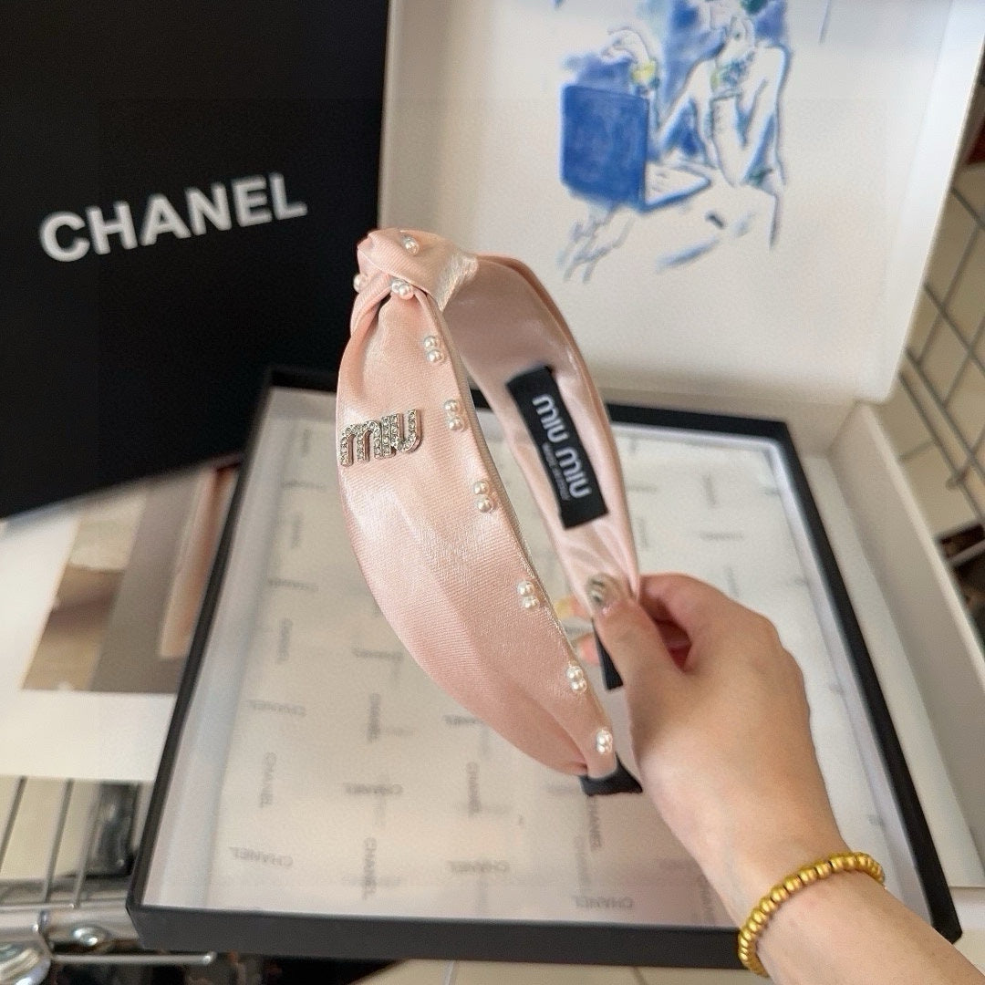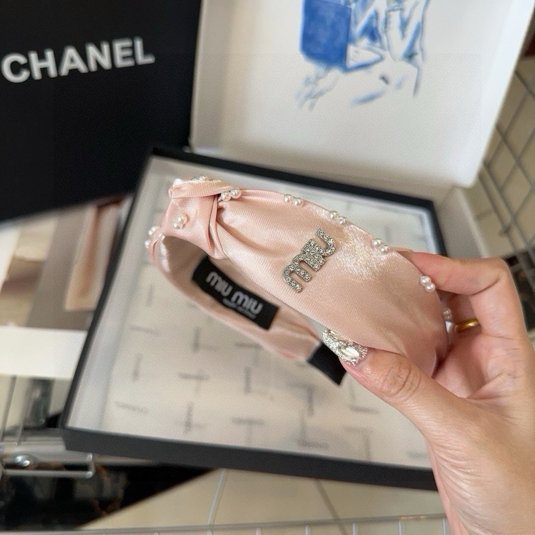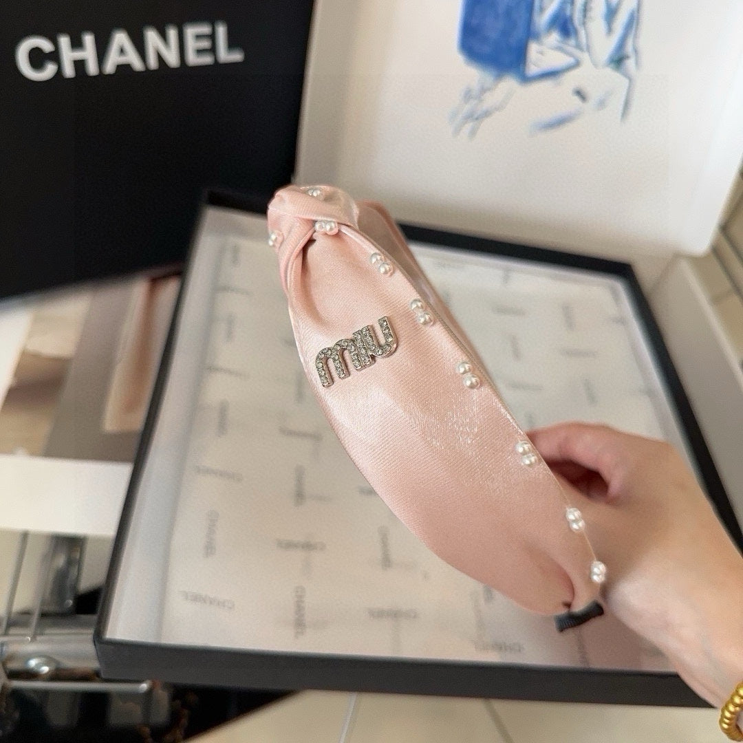 HEADBAND ATTACHED BEADED IN LIGHT PINK SATIN 427356