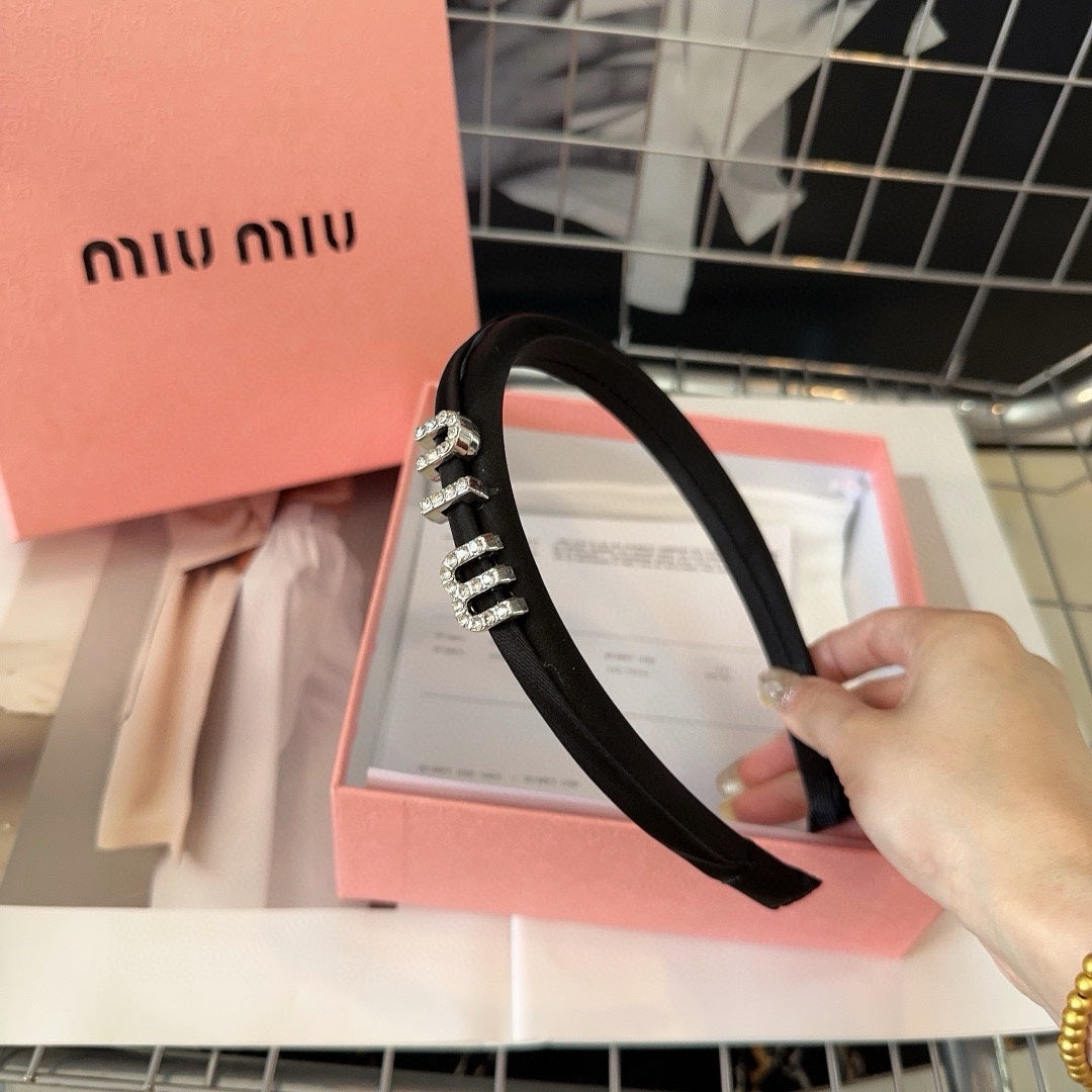 SILK HAIRBAND ATTACHED CRYSTAL LOGO BLACK 196475