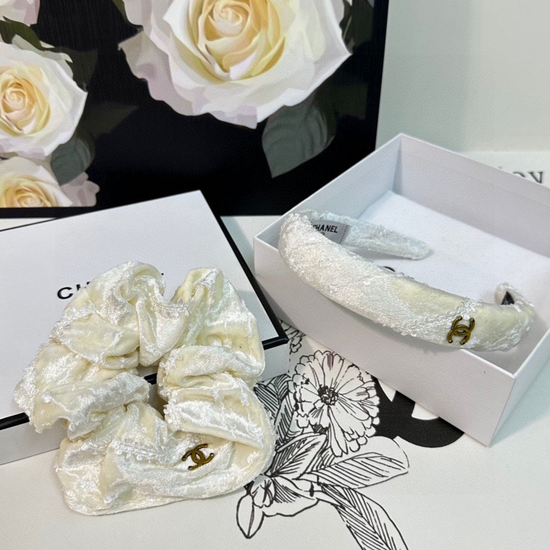 WHITE CREAM VELVET TWO-PIECE SET 412456