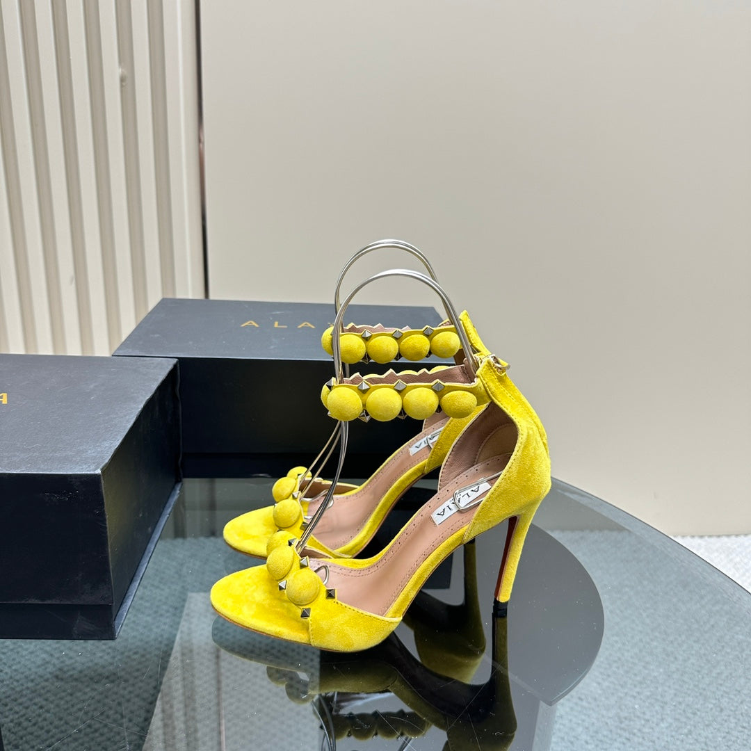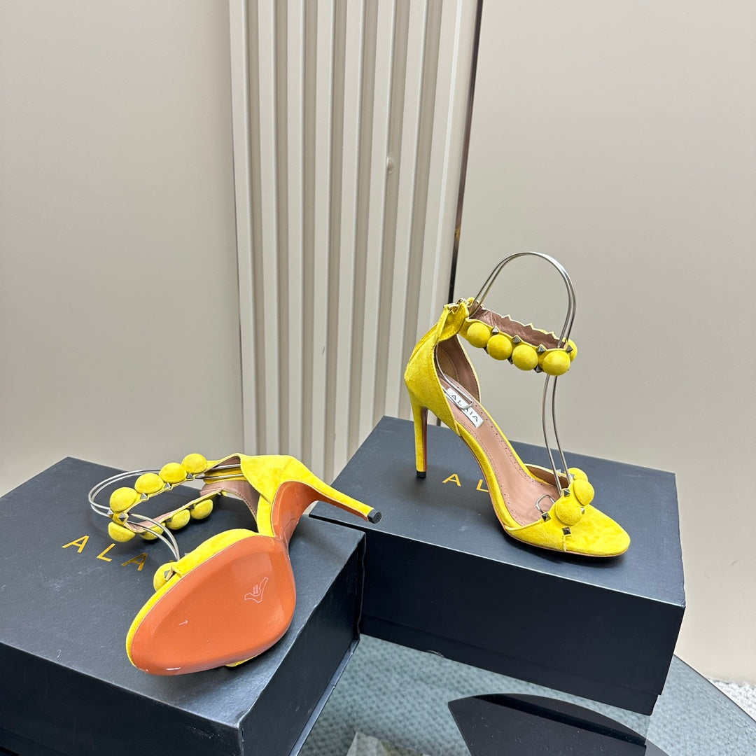ALAIA HIGH HEEL SANDAL 10 CM IN BRIGHT YELLOW SUEDE