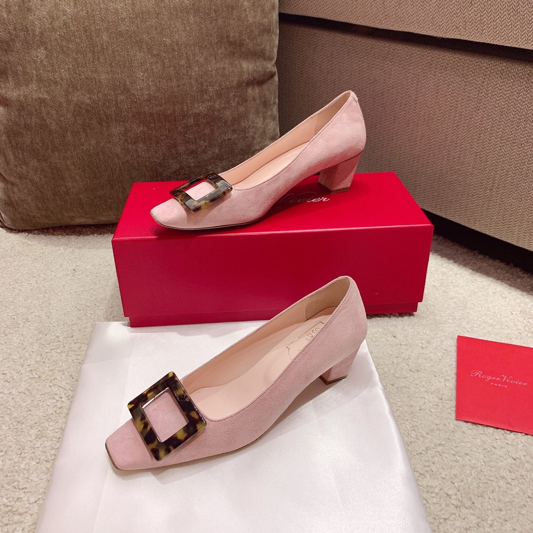 BELLE VIVIER PUMPS IN PINK SUEDE TORTOISESHELL BUCKLE