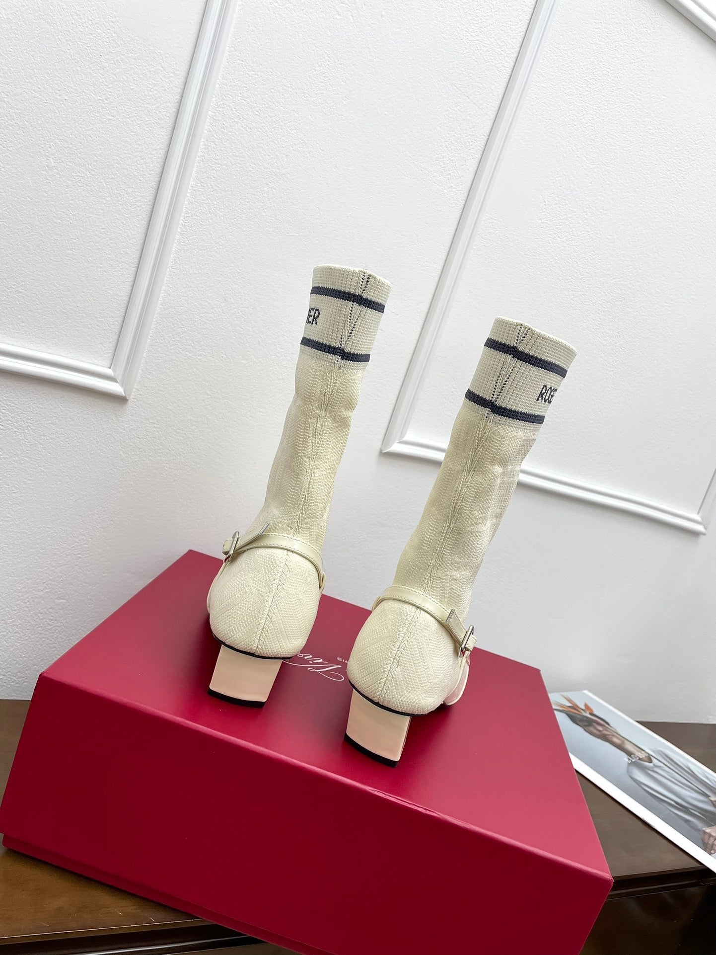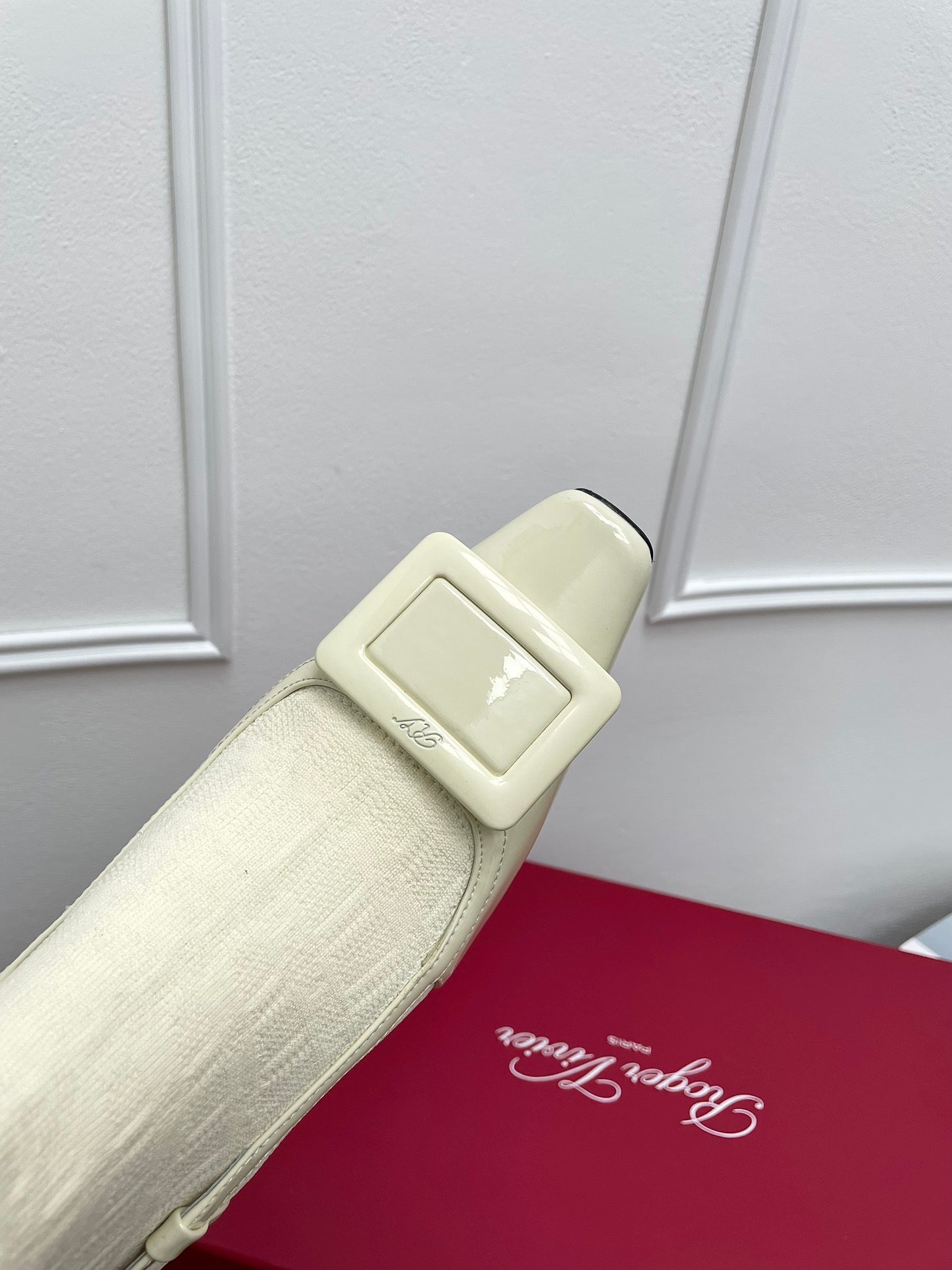 BELLE VIVIER SOCK LACQUERED BUCKLE ANKLE BOOTS IN OFF WHITE CALFSKIN AND TECHNICAL FABRIC