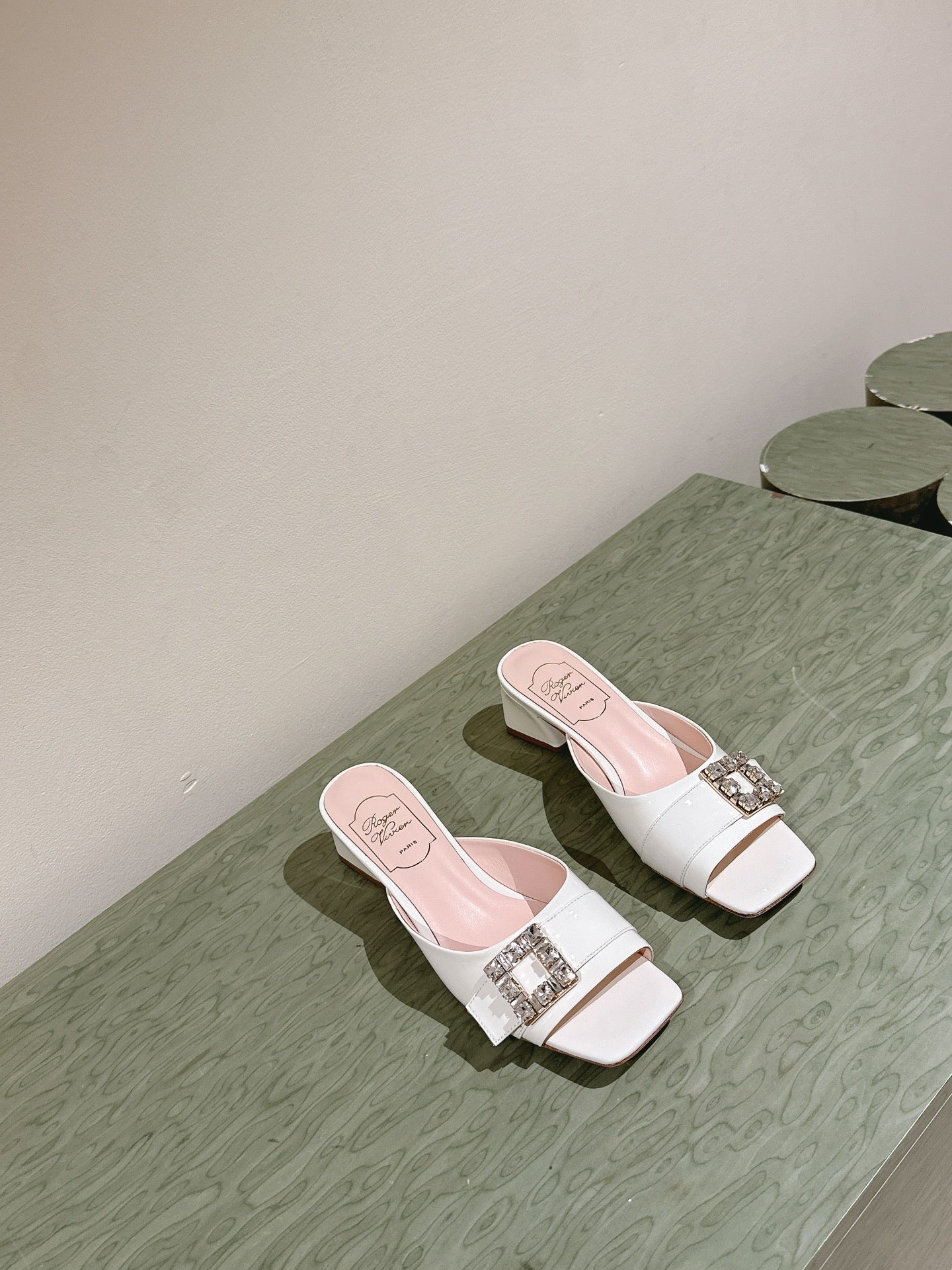 CRYSTAL HEEL MULE IN WHITE SHINY CALFSKIN WITH EMBELLISHED BUCKLE