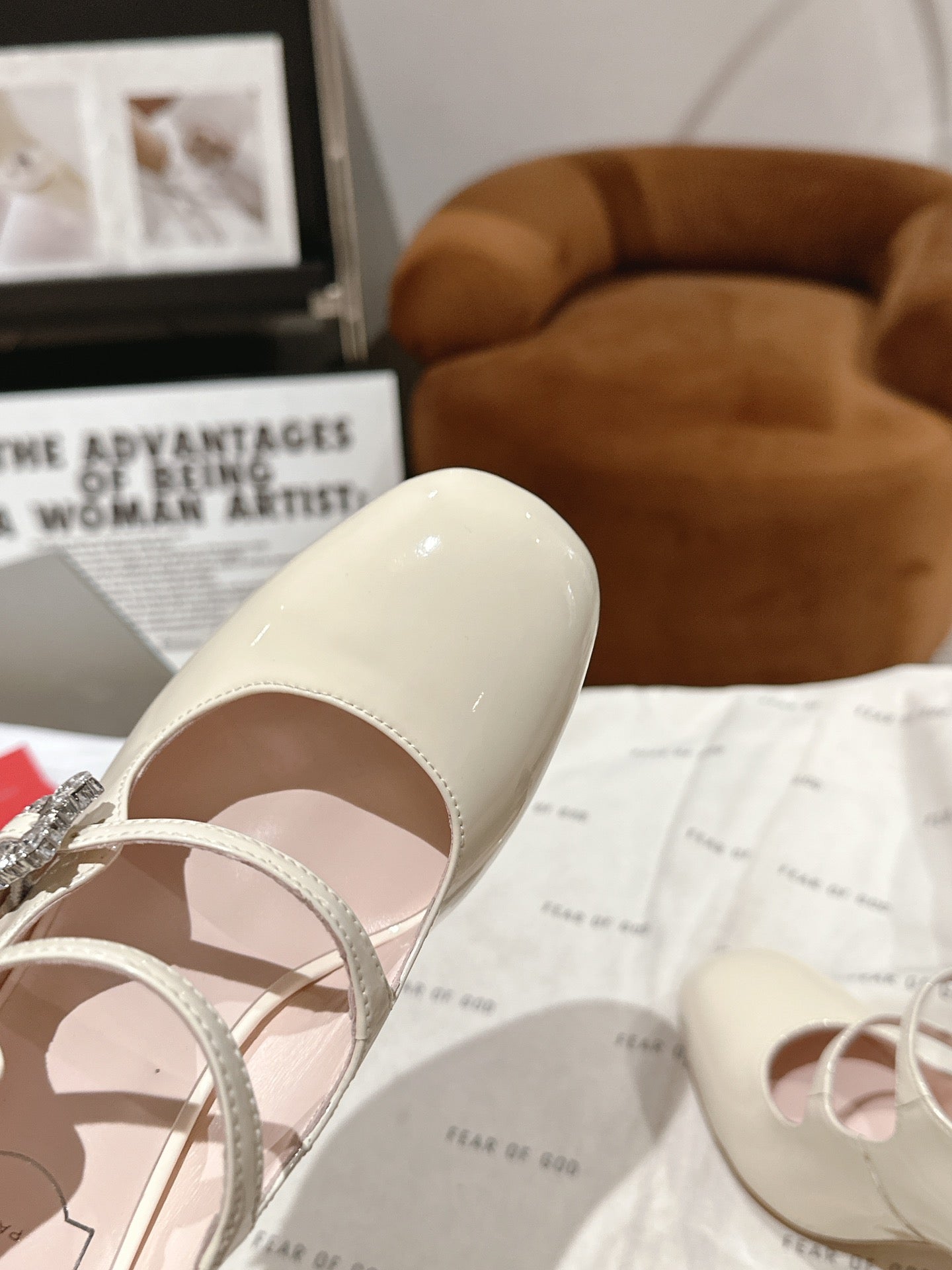 TRÈS VIVIER MARY JANE DOUBLE-STRAP PUMPS IN OFF WHITE PATENT CALFSKIN