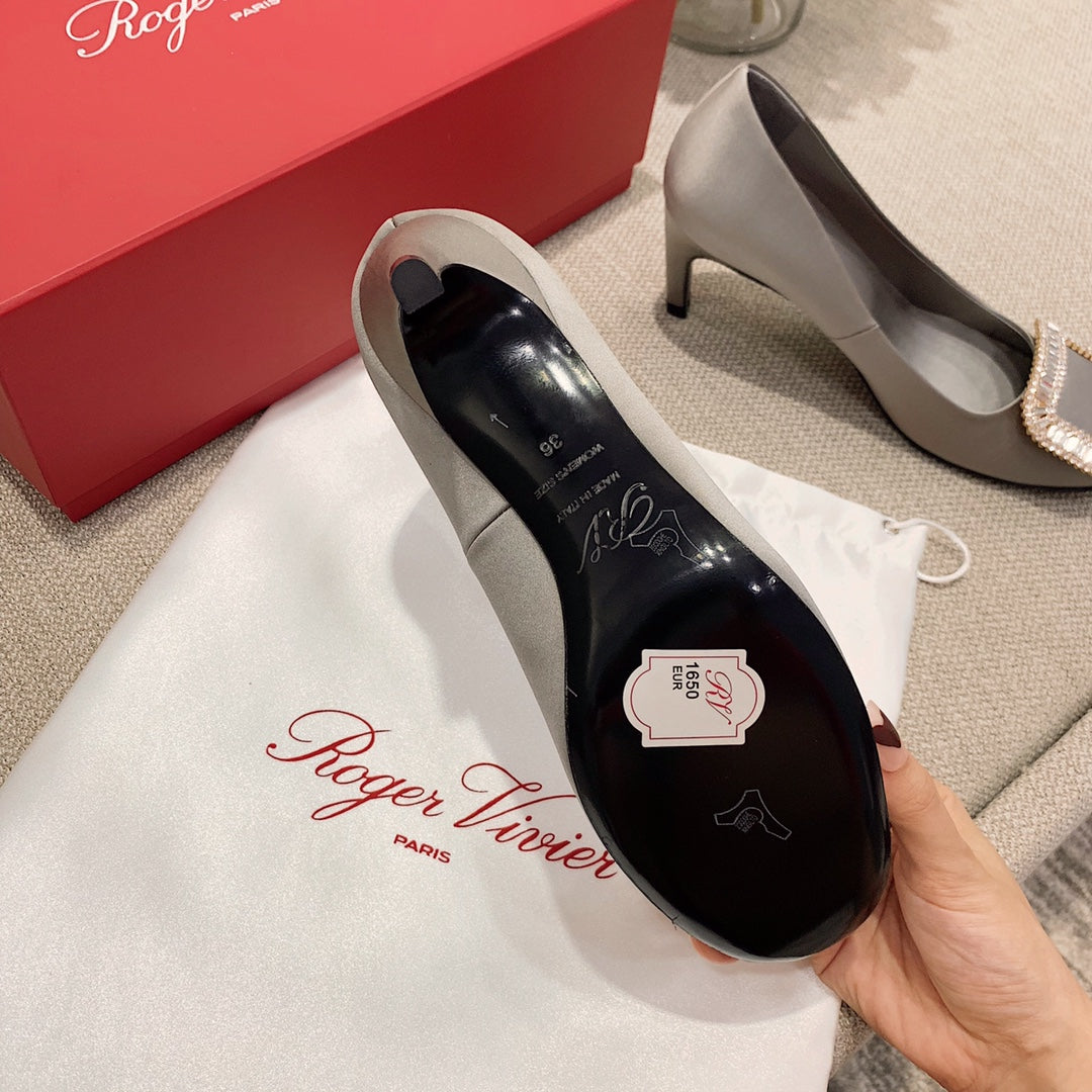TROMPETTE PUMPS IN TAUPE SILK CRYSTAL BUCKLE