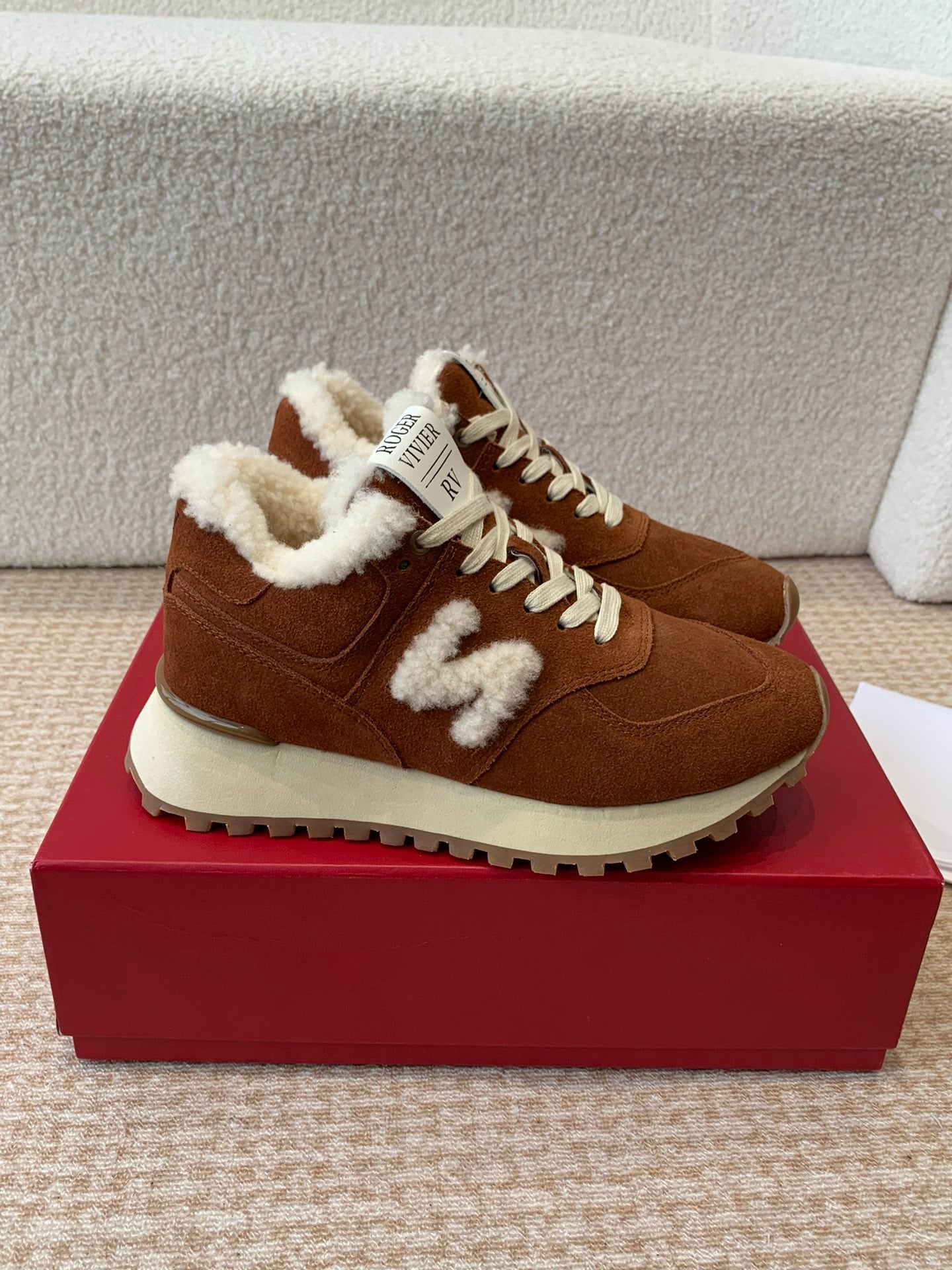 VIV' RUN SNEAKER IN BROWN SUEDE AND SHEARLING