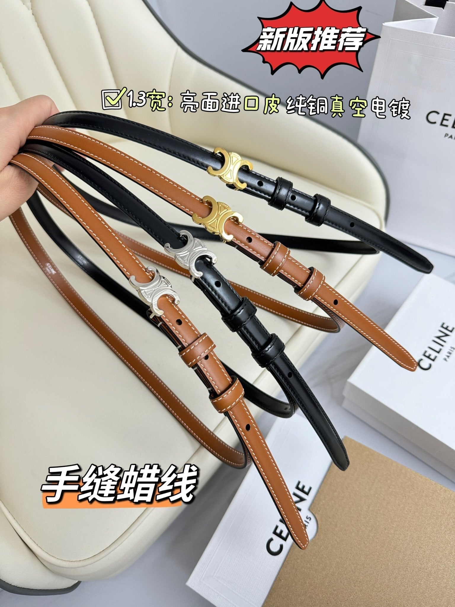 MINI TRIOMPHE BELT 13 MM BRONZE BROWN LEATHER GOLD HARDWARE