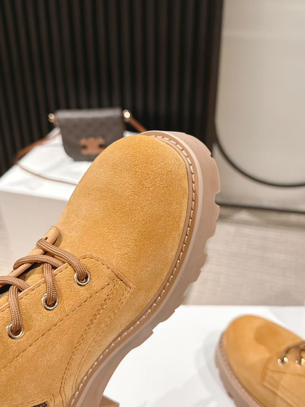 CELINE 25S HIGH HEELED LACE UP BOOTS 50MM IN DARK ORANGE SUEDE