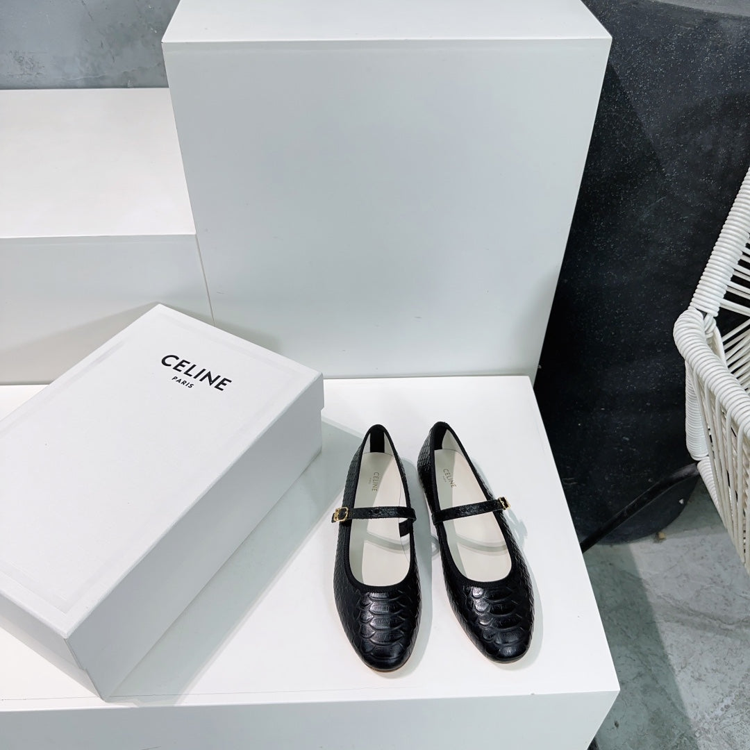 BALLET FLAT IN BLACK EMBOSSED CALFSKIN