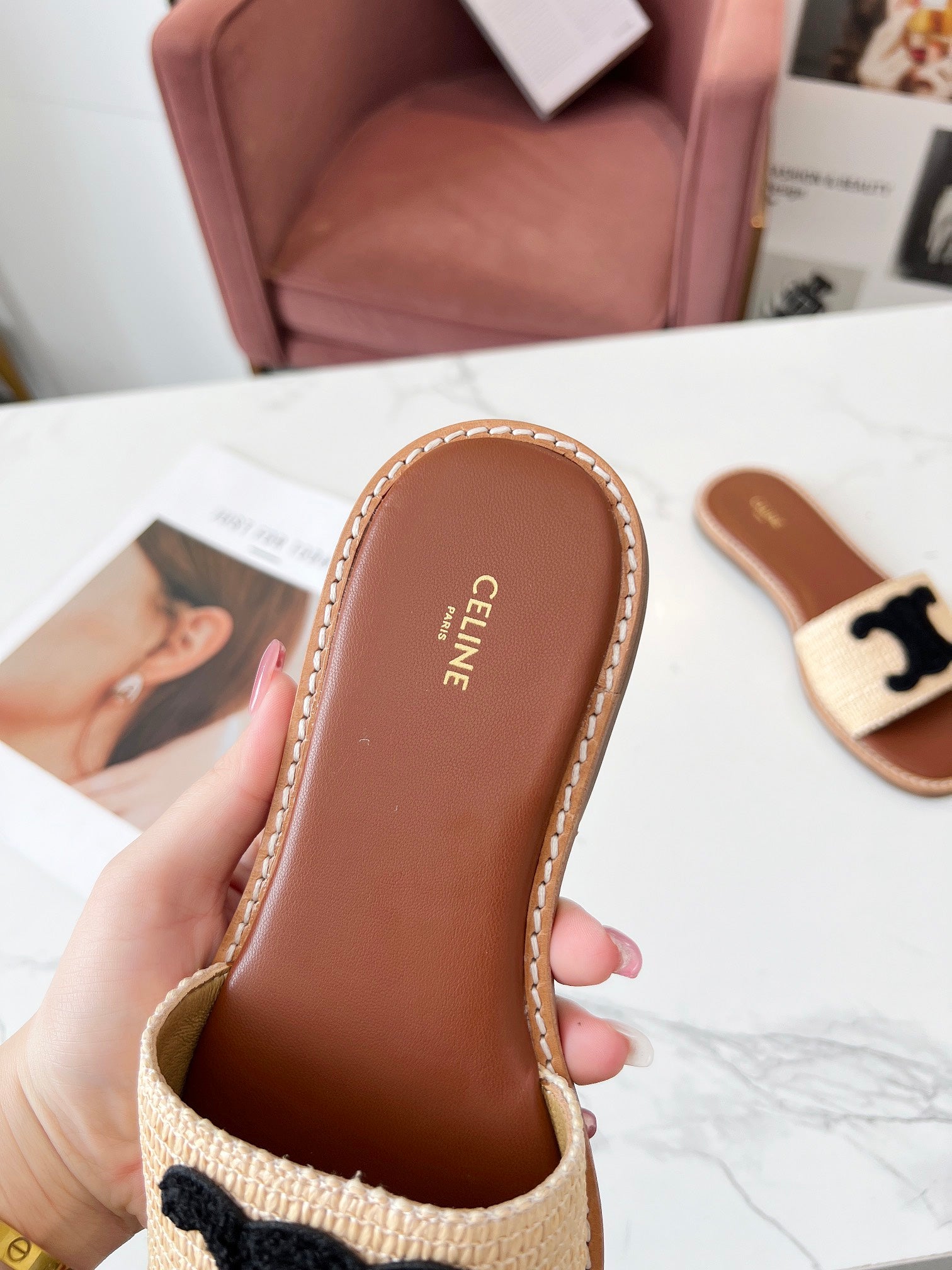 LYMPIA MULE BEIGE RAFFIA BLACK WOOL LOGO