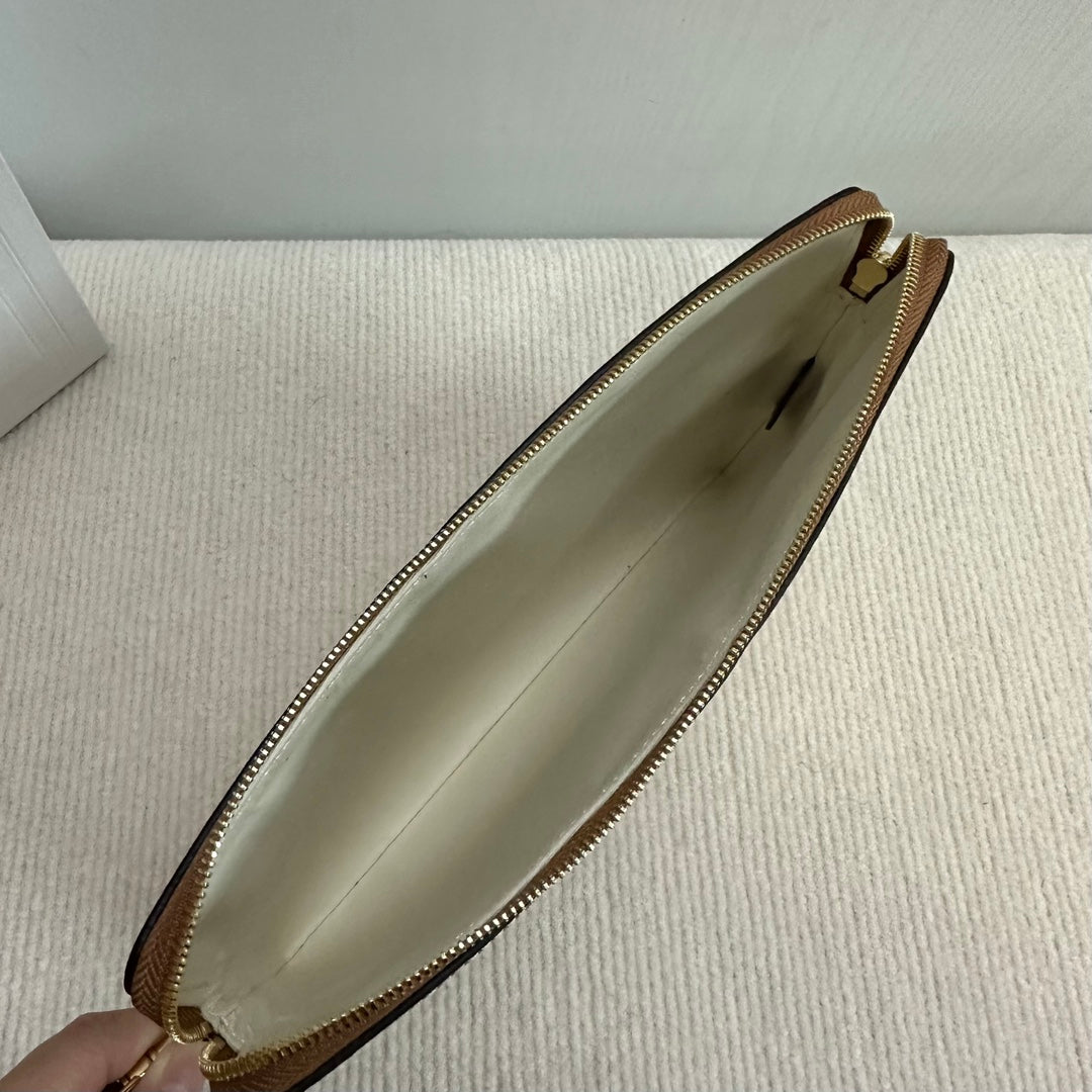 SMALL POUCH 25 IN BEIGE CANVAS AND BROWN CALFSKIN