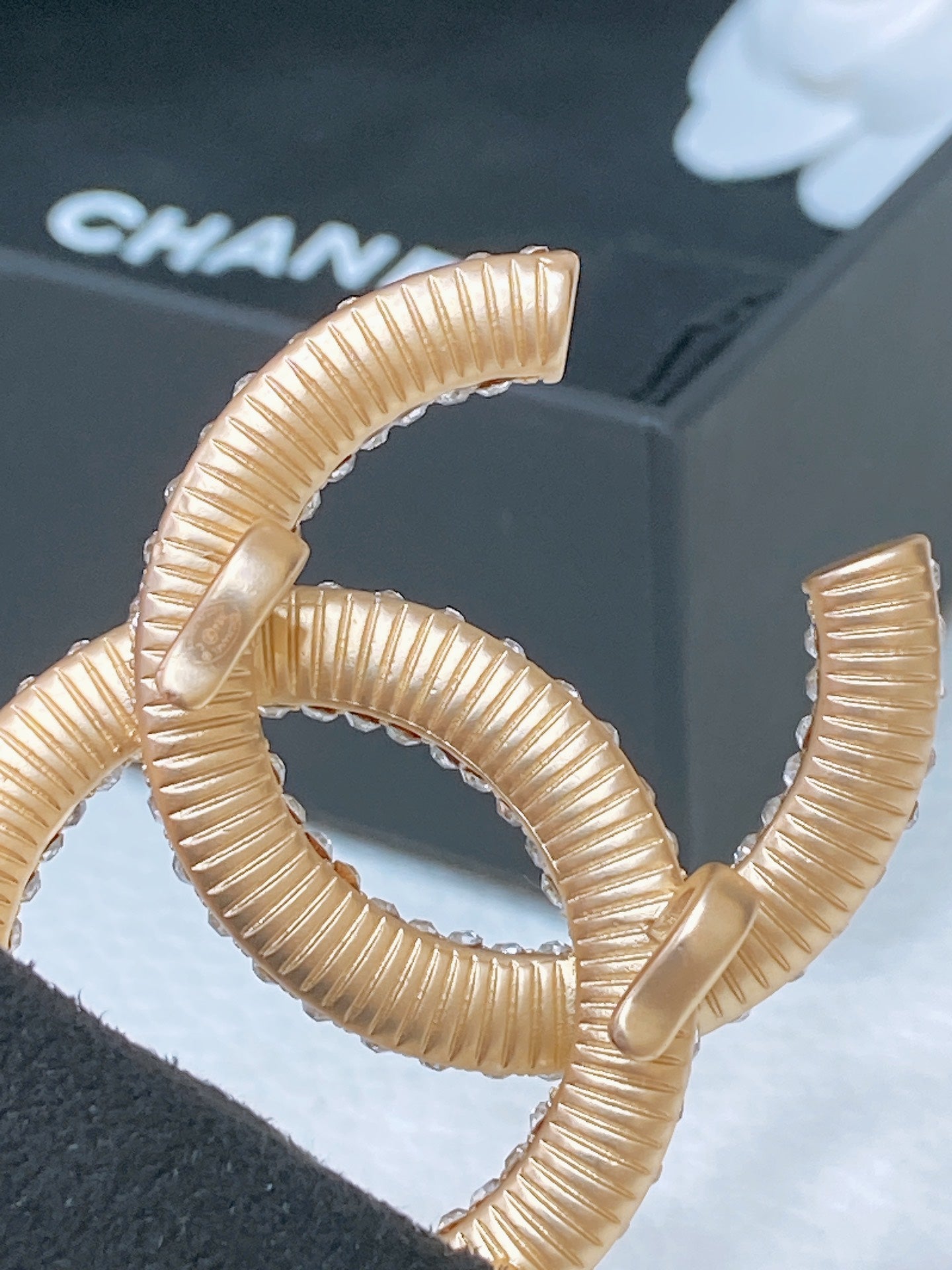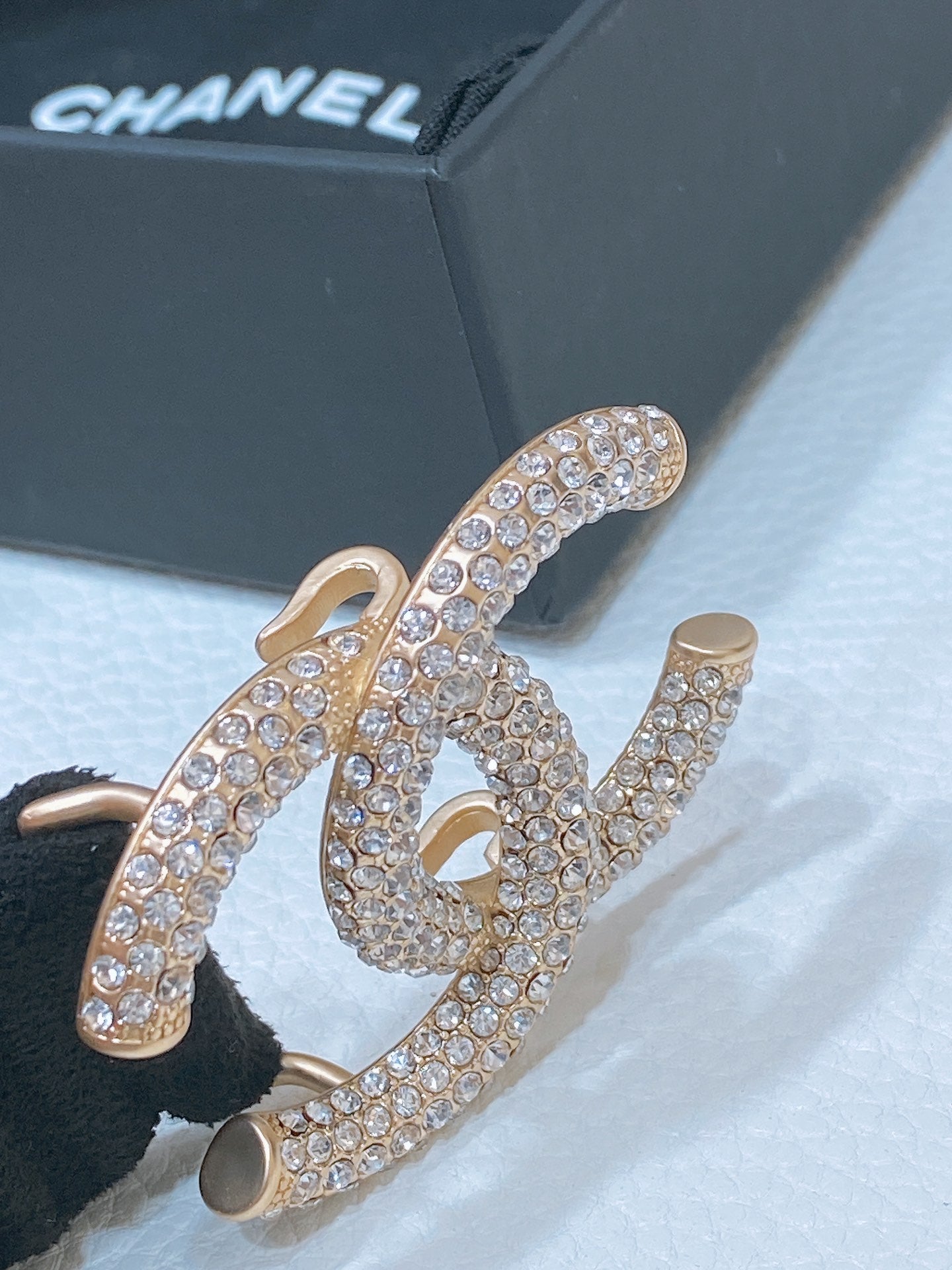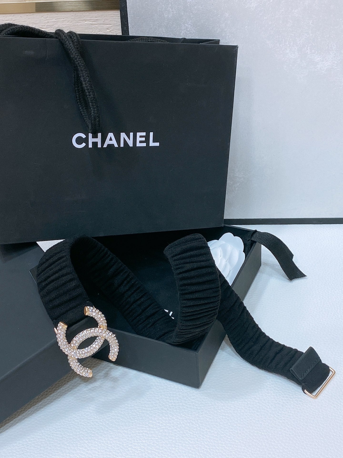 CC ELASTIC BELT 30MM IN BLACK WOOL FABRIC GOLD HARDWARE WITH RHINSTONES