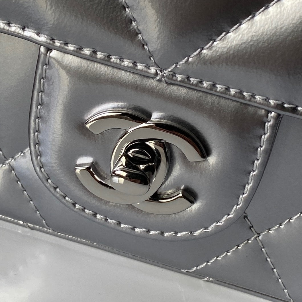 CHANEL 25S FLAP BAG 18 IN SILVER METALLIC CALFSKIN