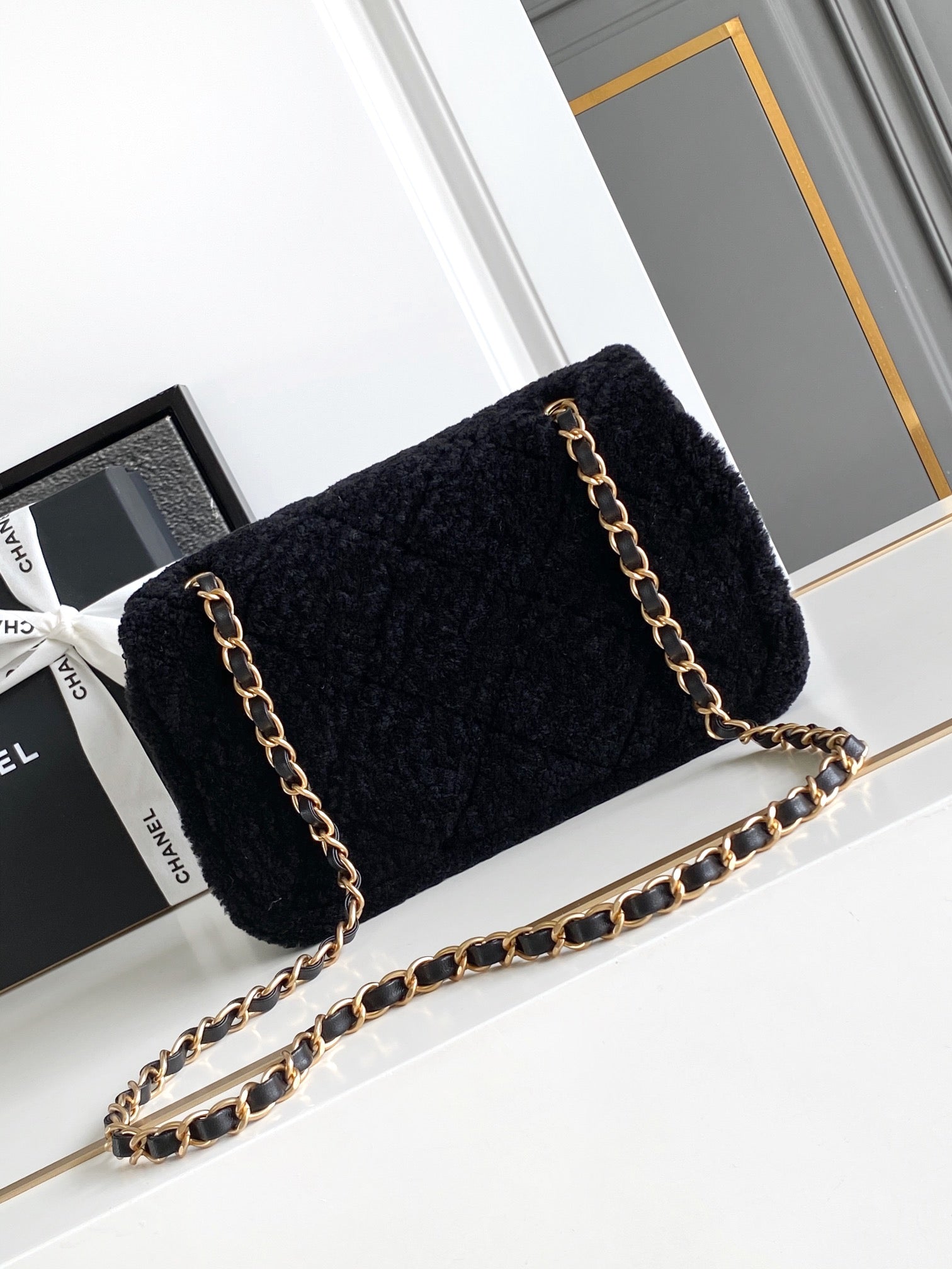 CHANEL 25S FLAP BAG 23.5 CM IN BLACK WOOL AND LAMBSKIN