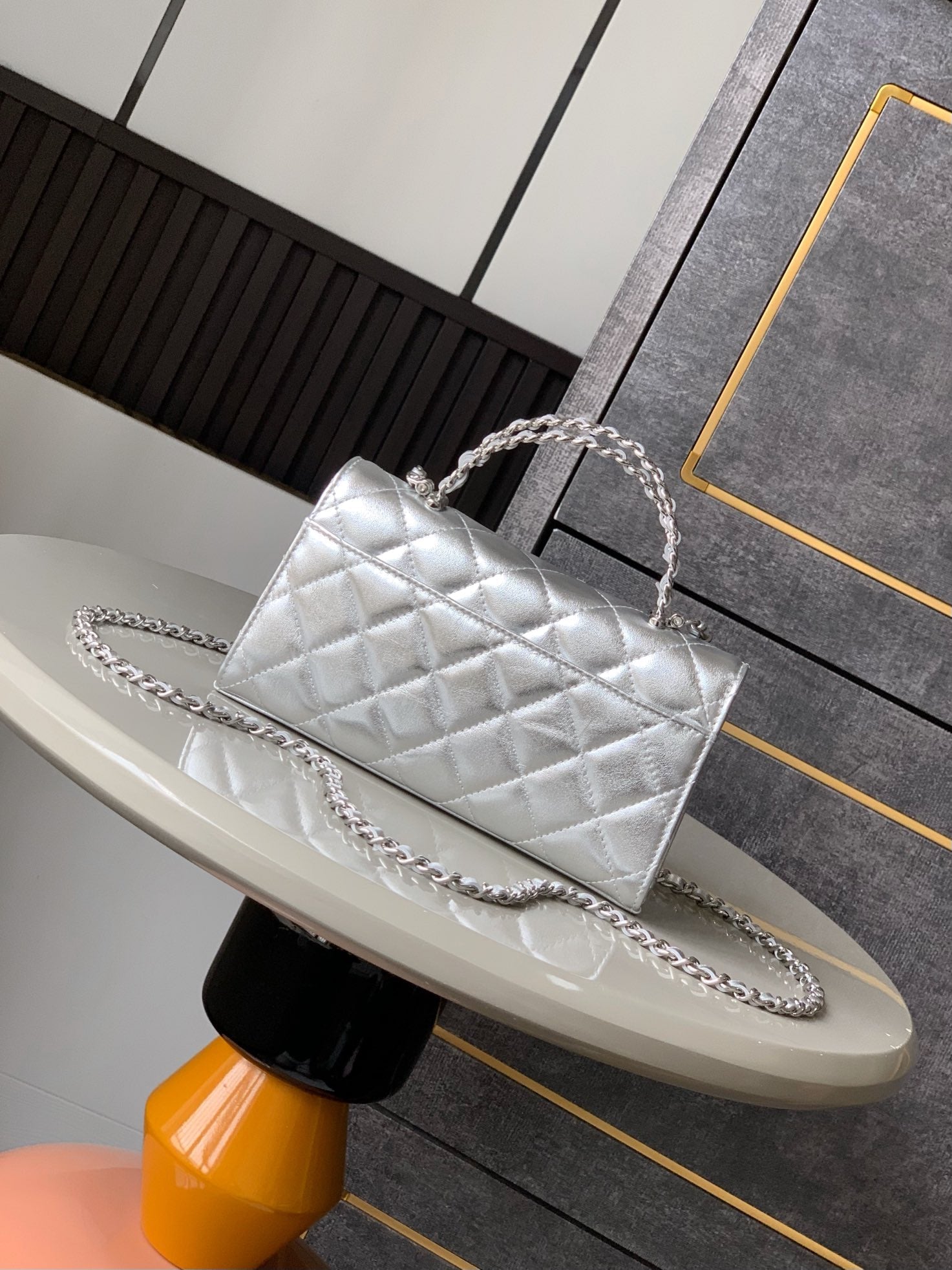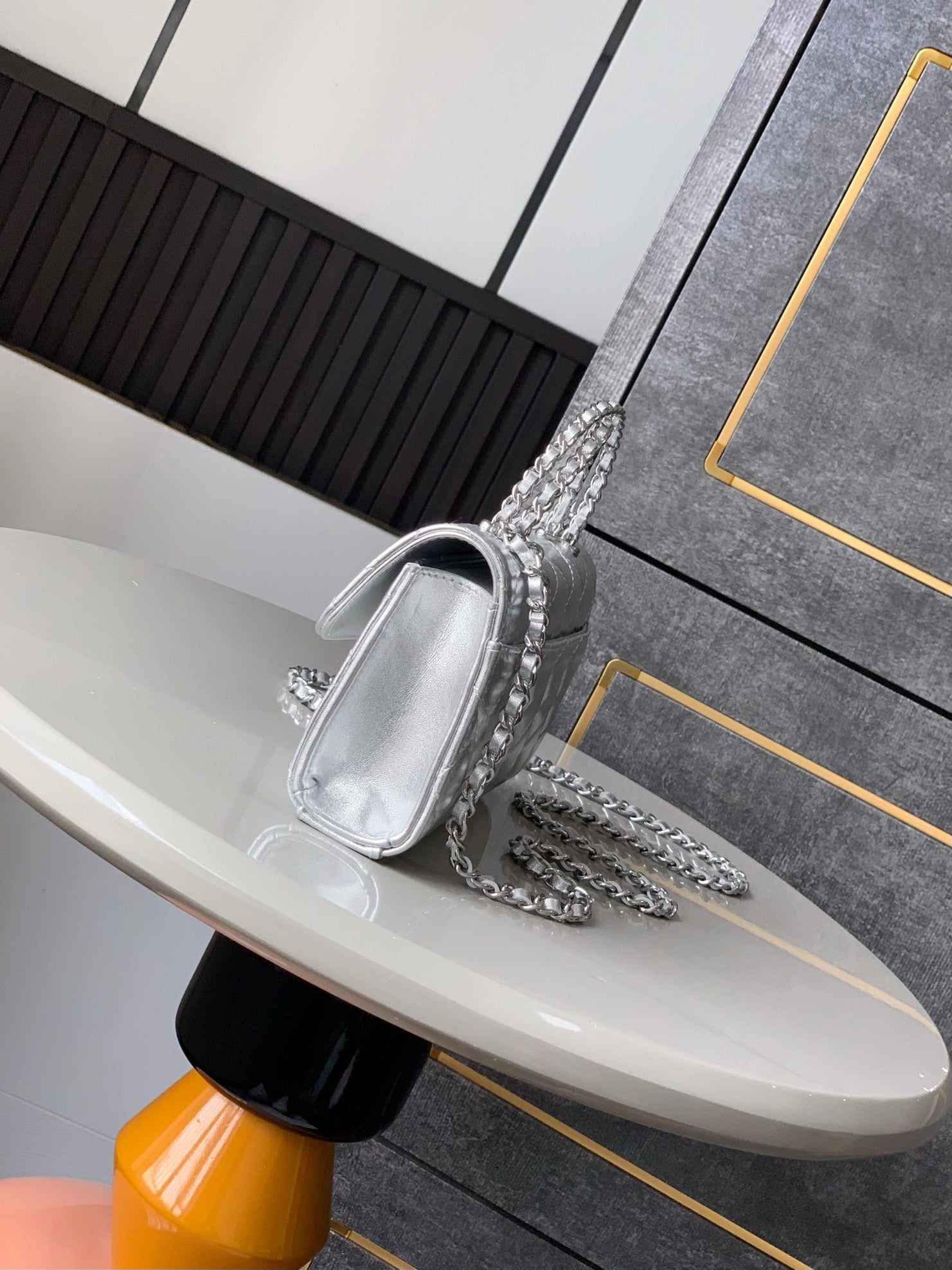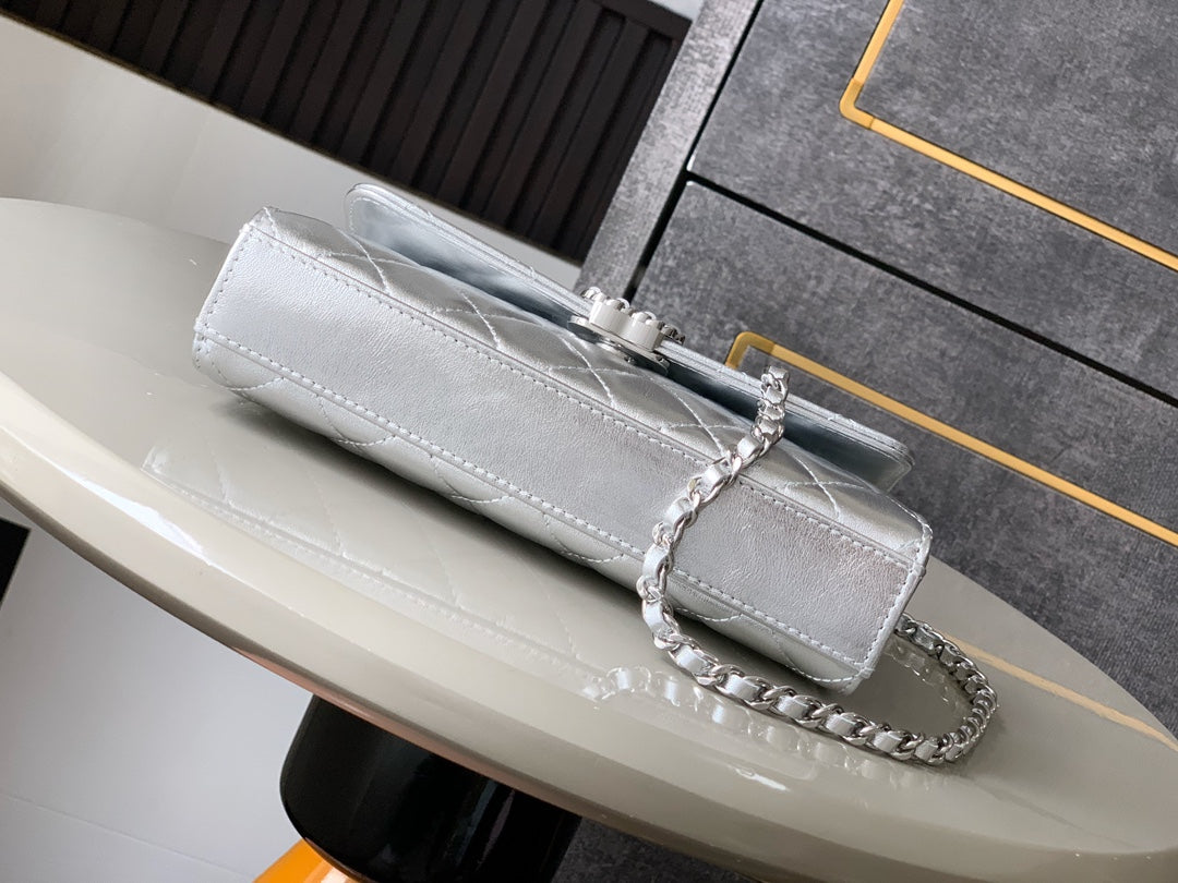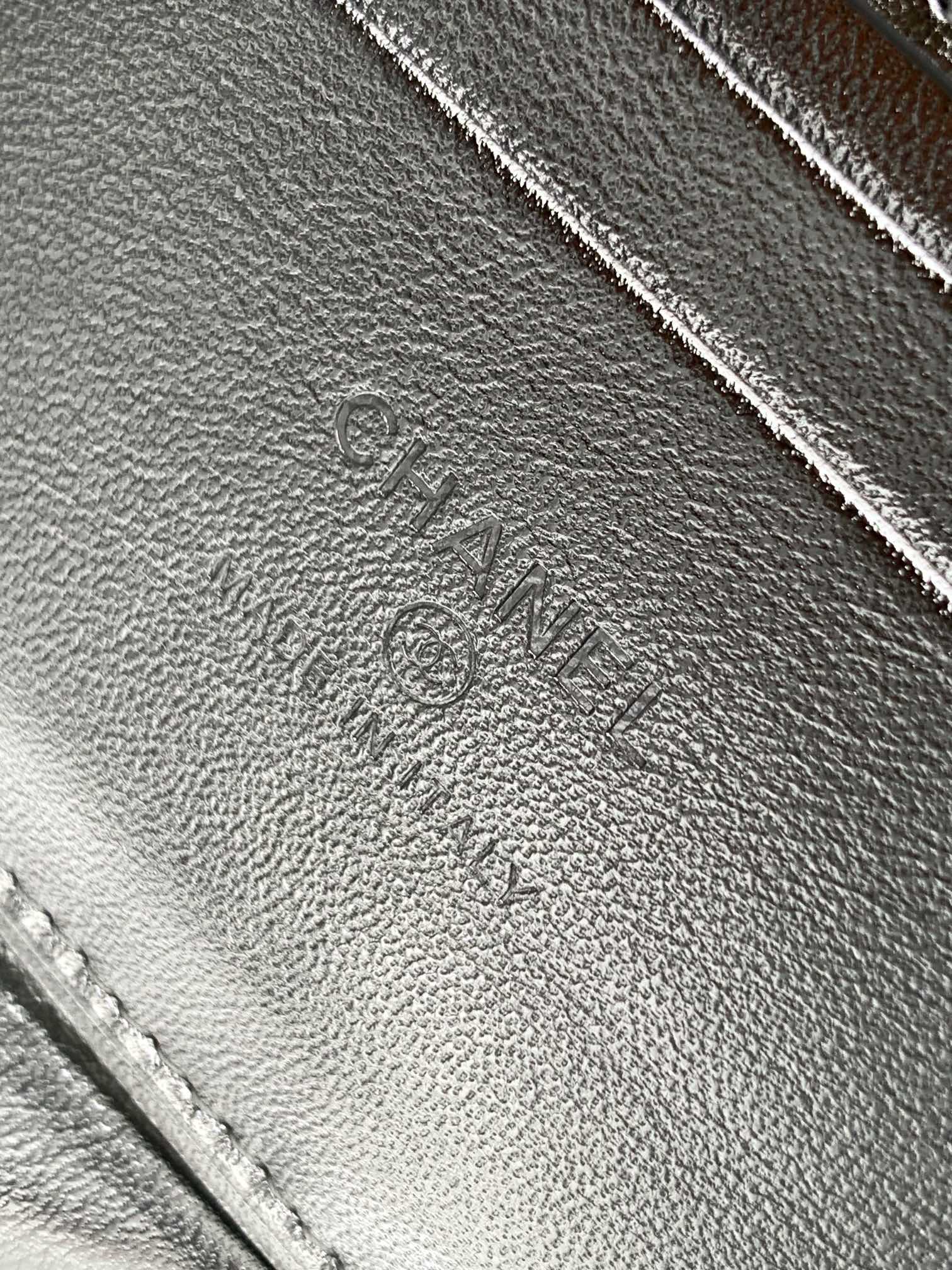 CHANEL 25S KELLY BAG 18 IN SILVER METALLIC LAMBSKIN WITH SILVER HARDWARE STYLE 3