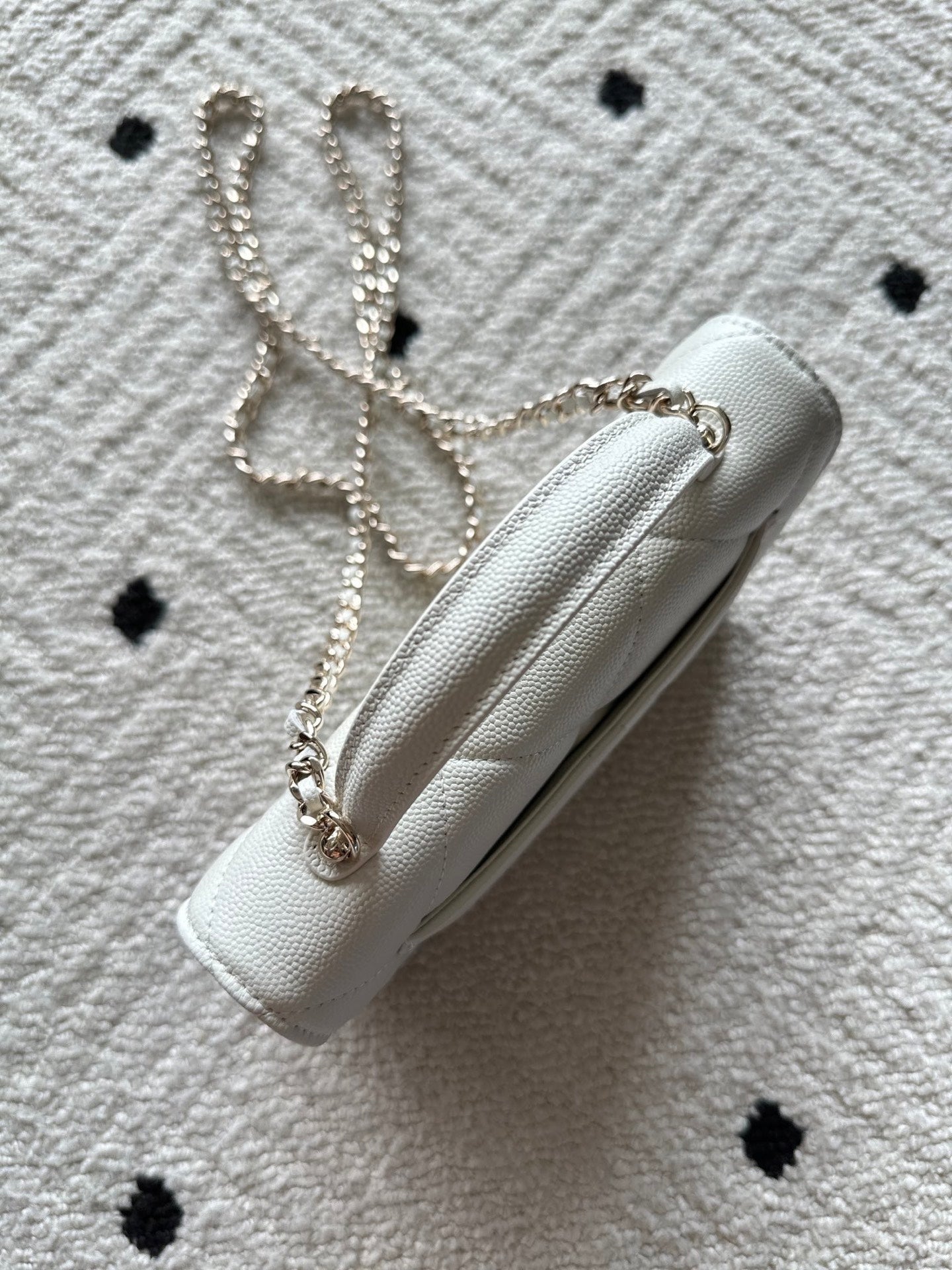 CHANEL 25S MINI FLAP BAG 19 IN WHITE CAVIAR LEATHER