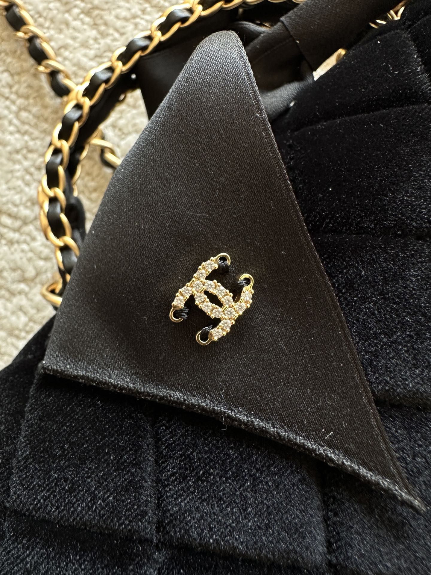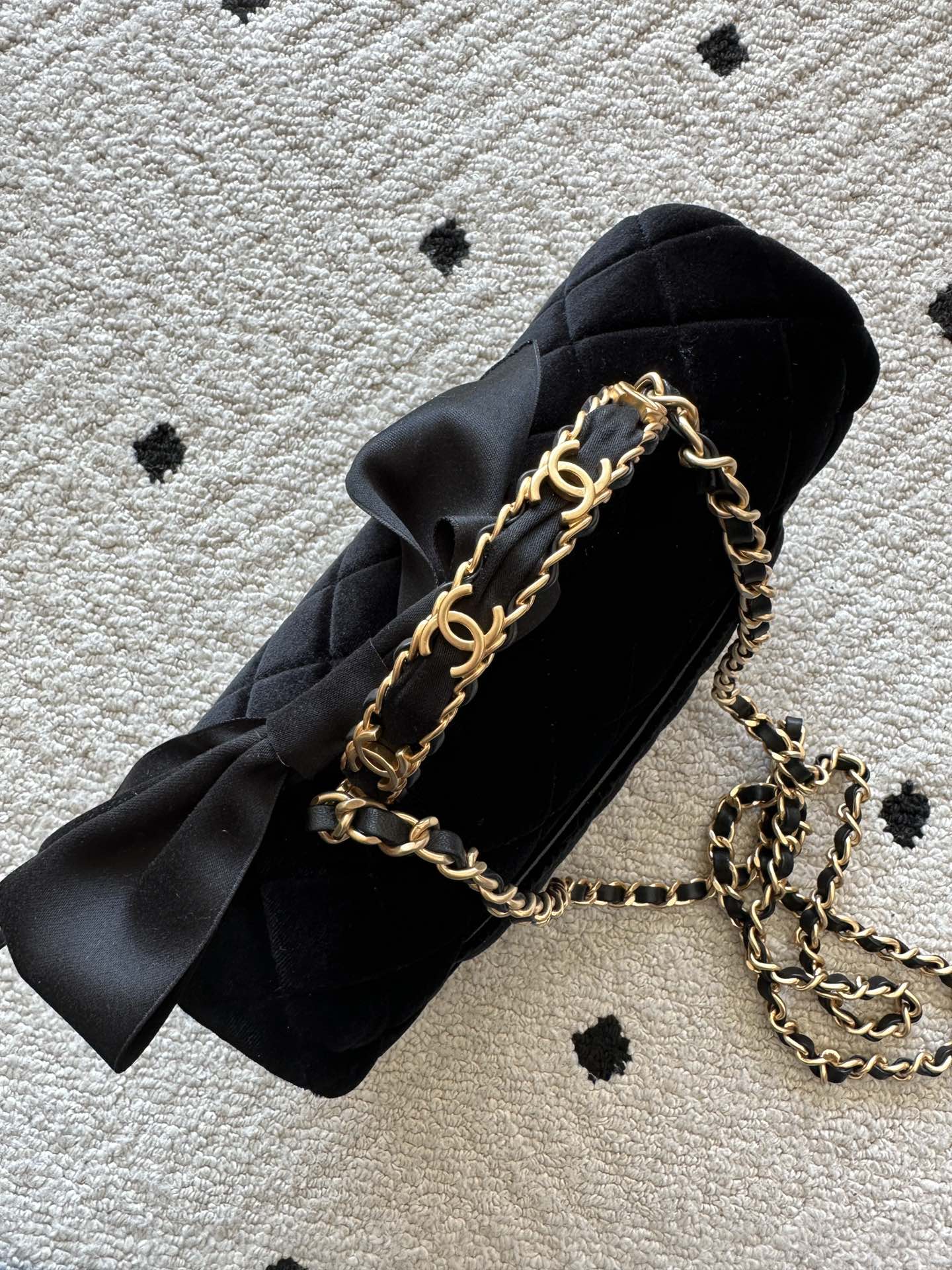 CHANEL 25S MINI FLAP BAG 23 IN BLACK VELVET WITH GOLD HARDWARE