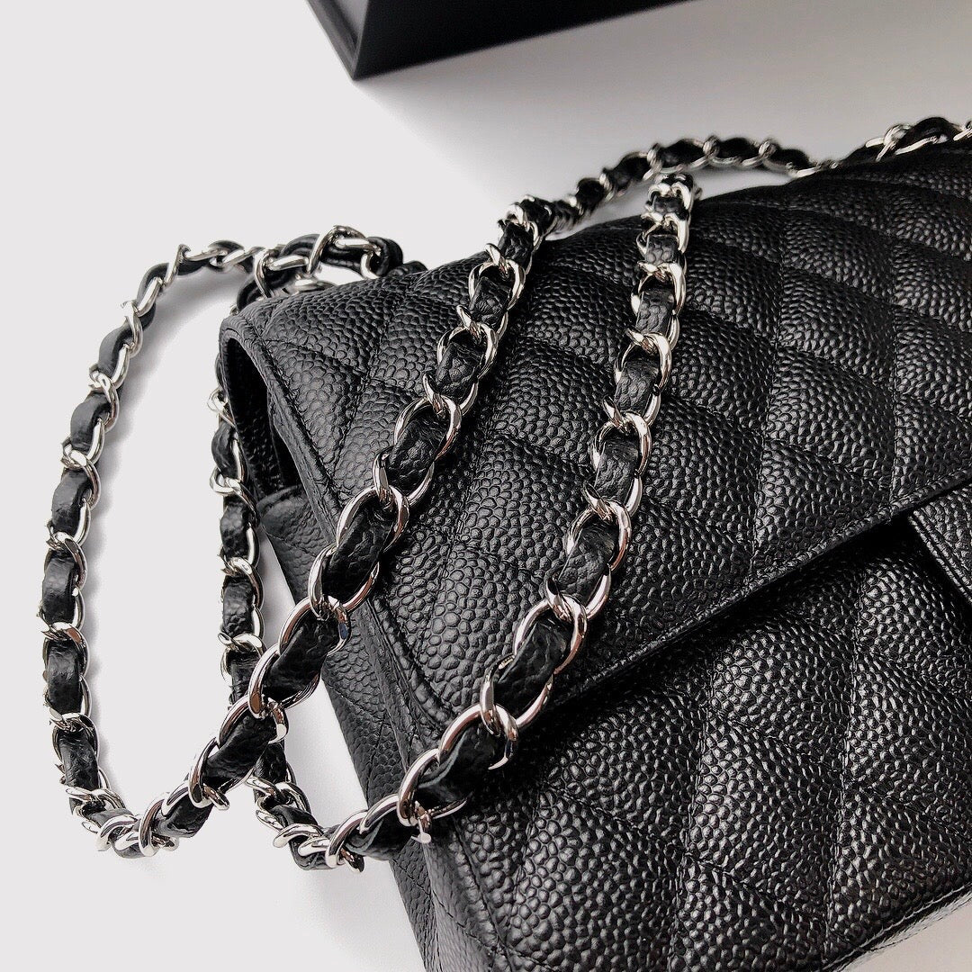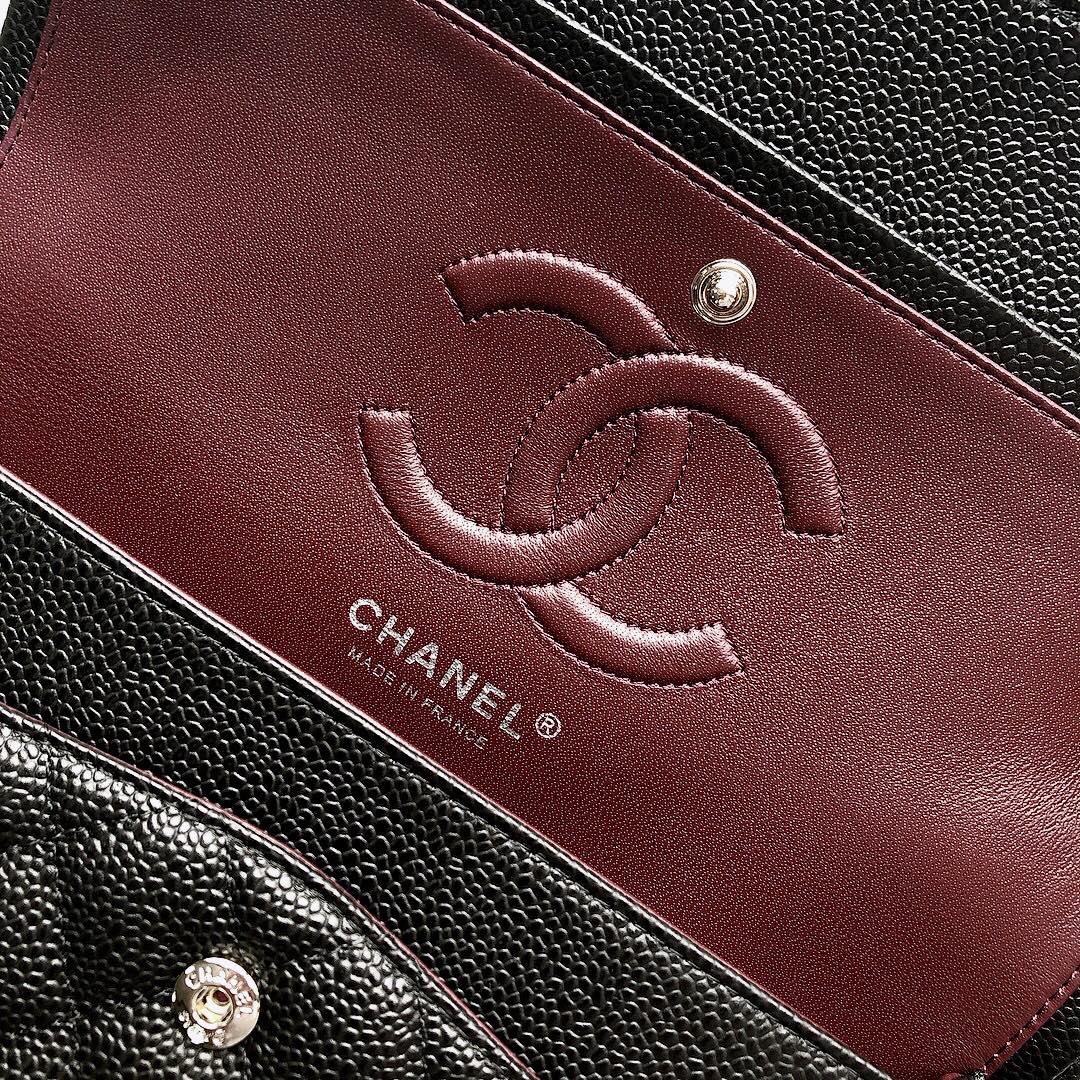 FLAP BAG 25 IN BLACK CAVIAR LEATHER SILVER HARDWARE