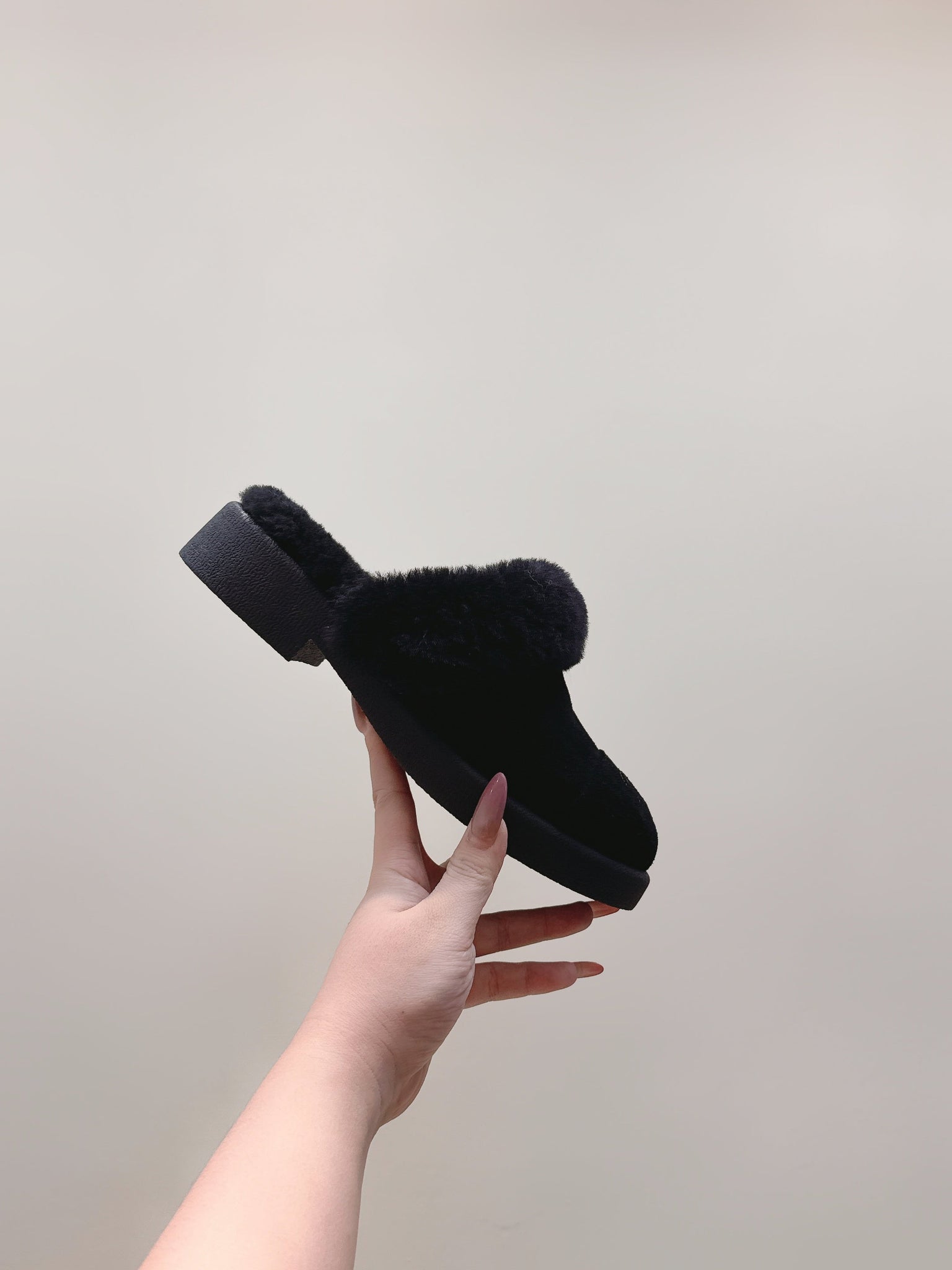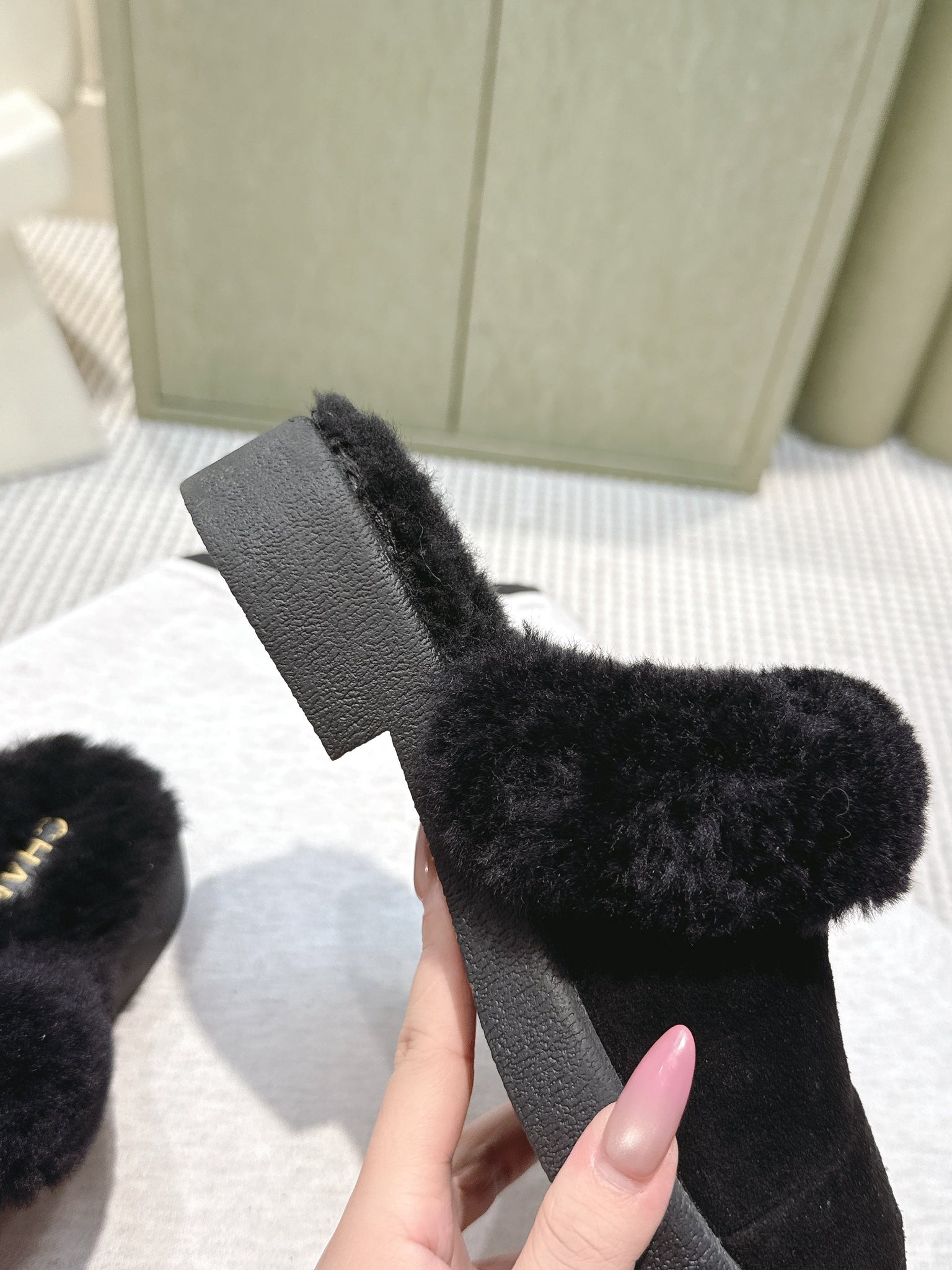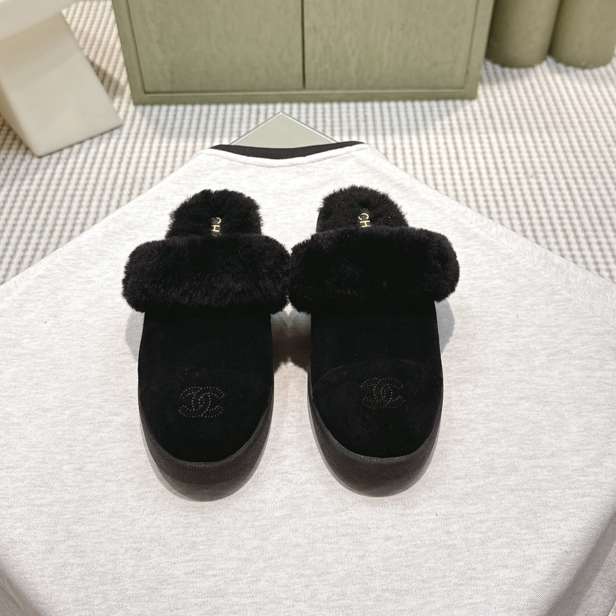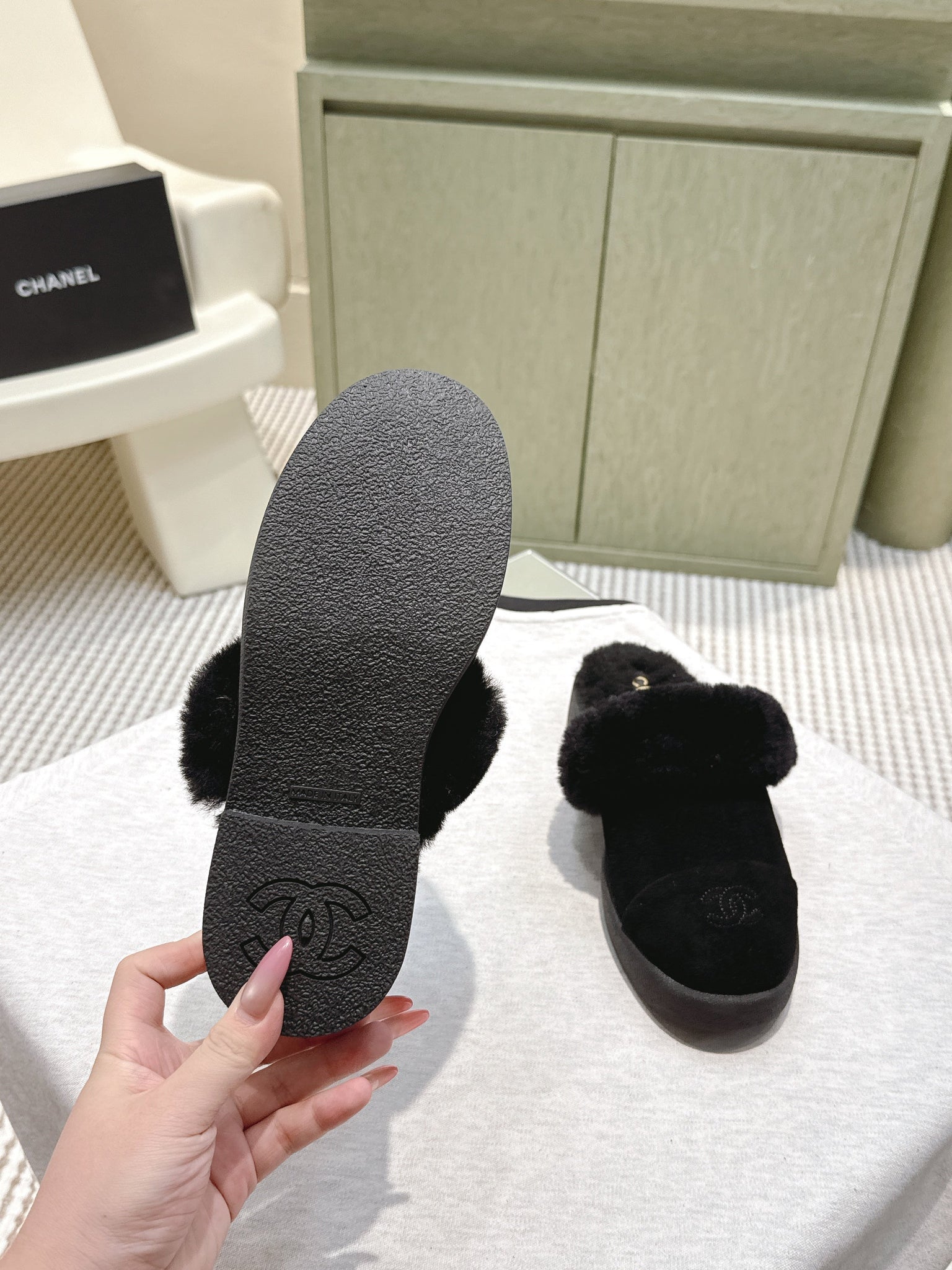 CHANEL 25S FUR-LINED MULES IN BLACK SUEDE
