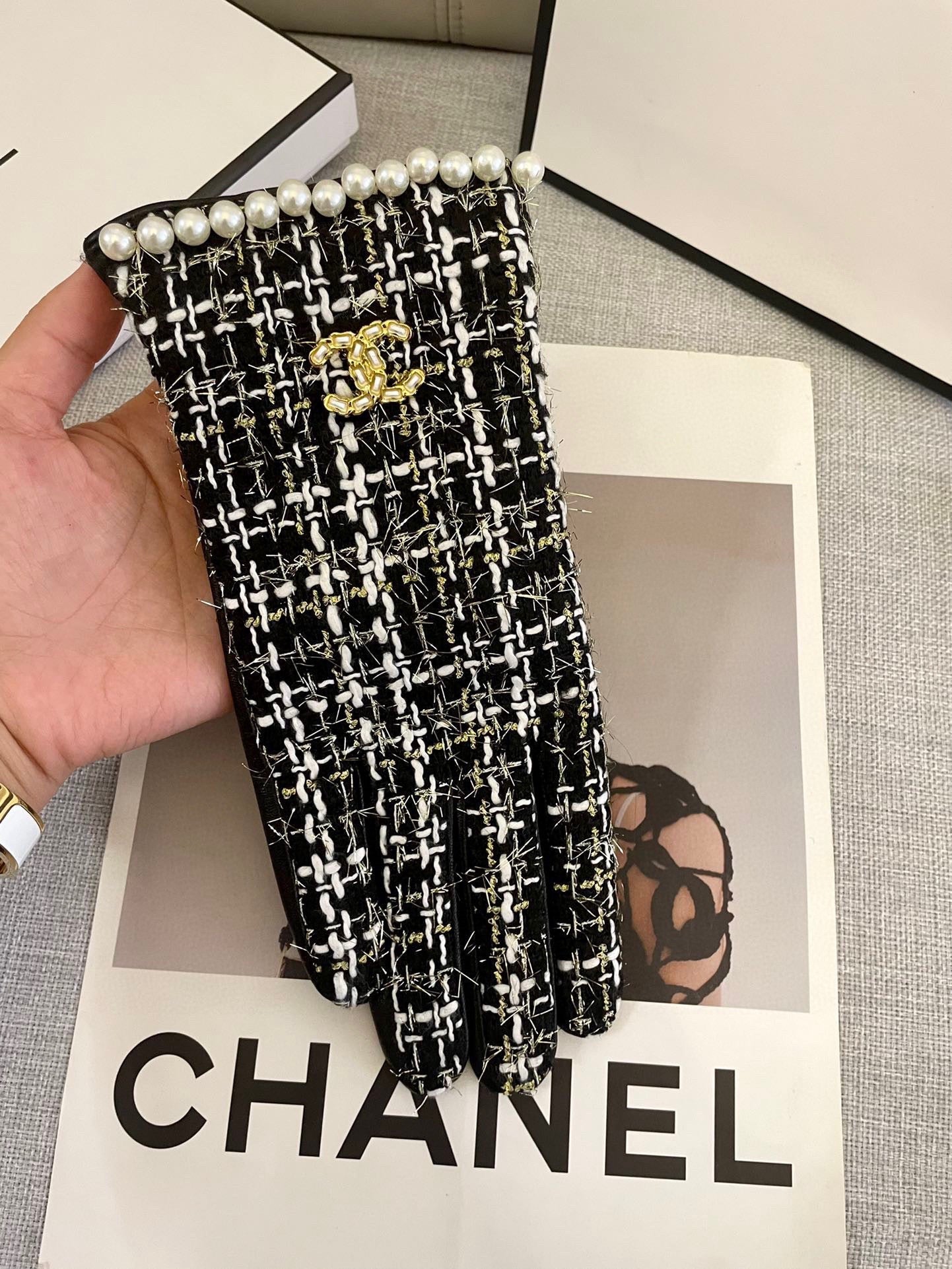 GLOVES IN BLACK MIX WHITE WOOL TWEED AND SHEEPSKIN 463846