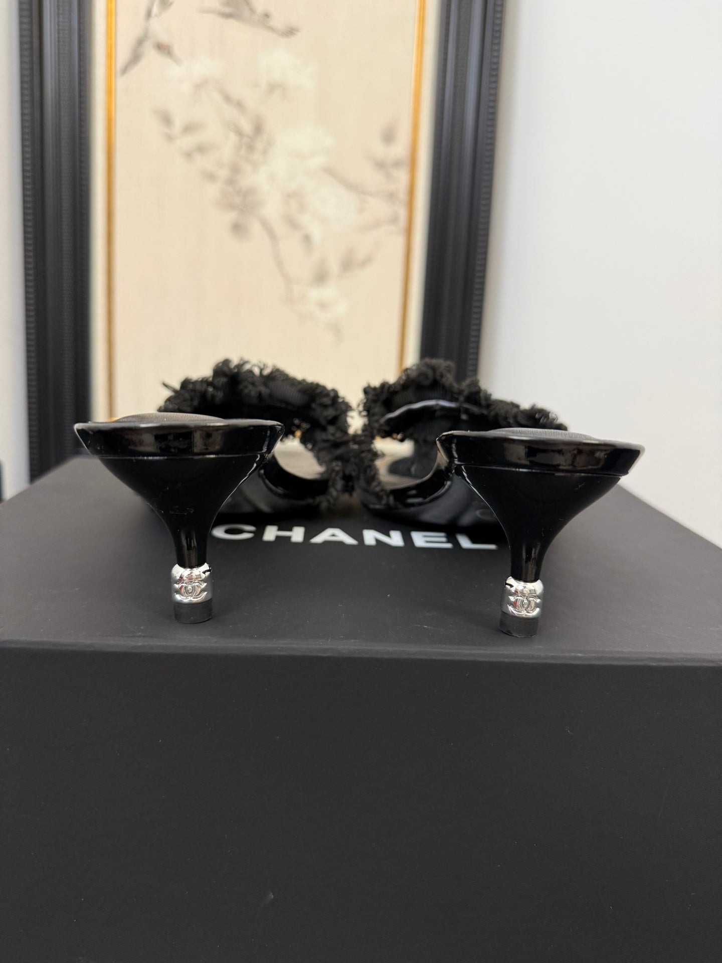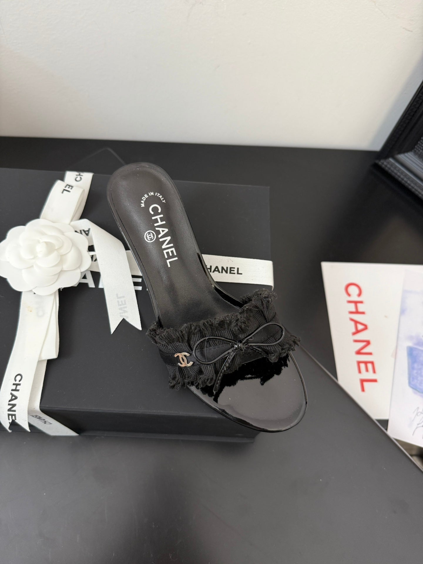 BLACK GROSGRAIN CANVAS BOW MULE SANDALS 65 MM