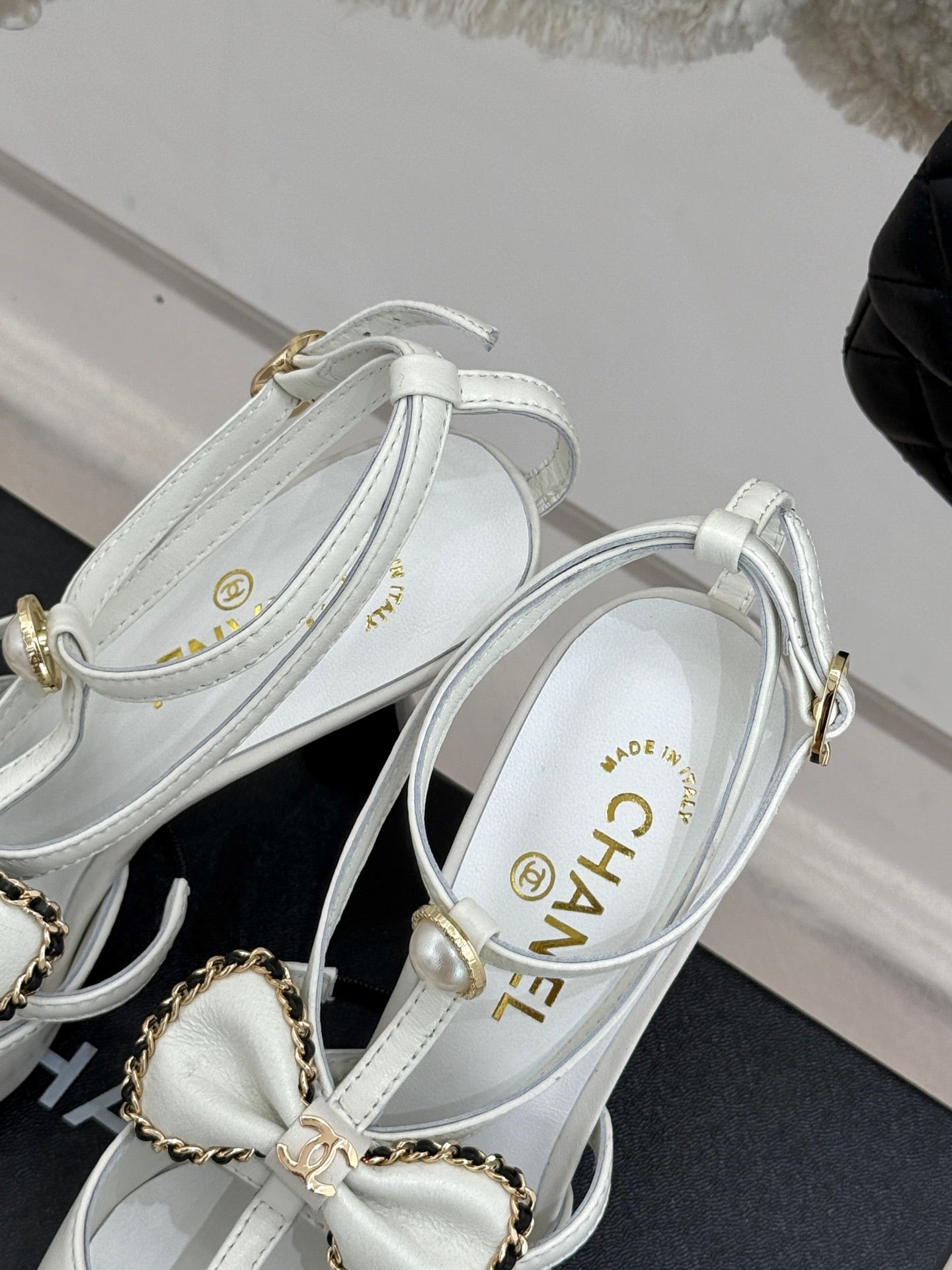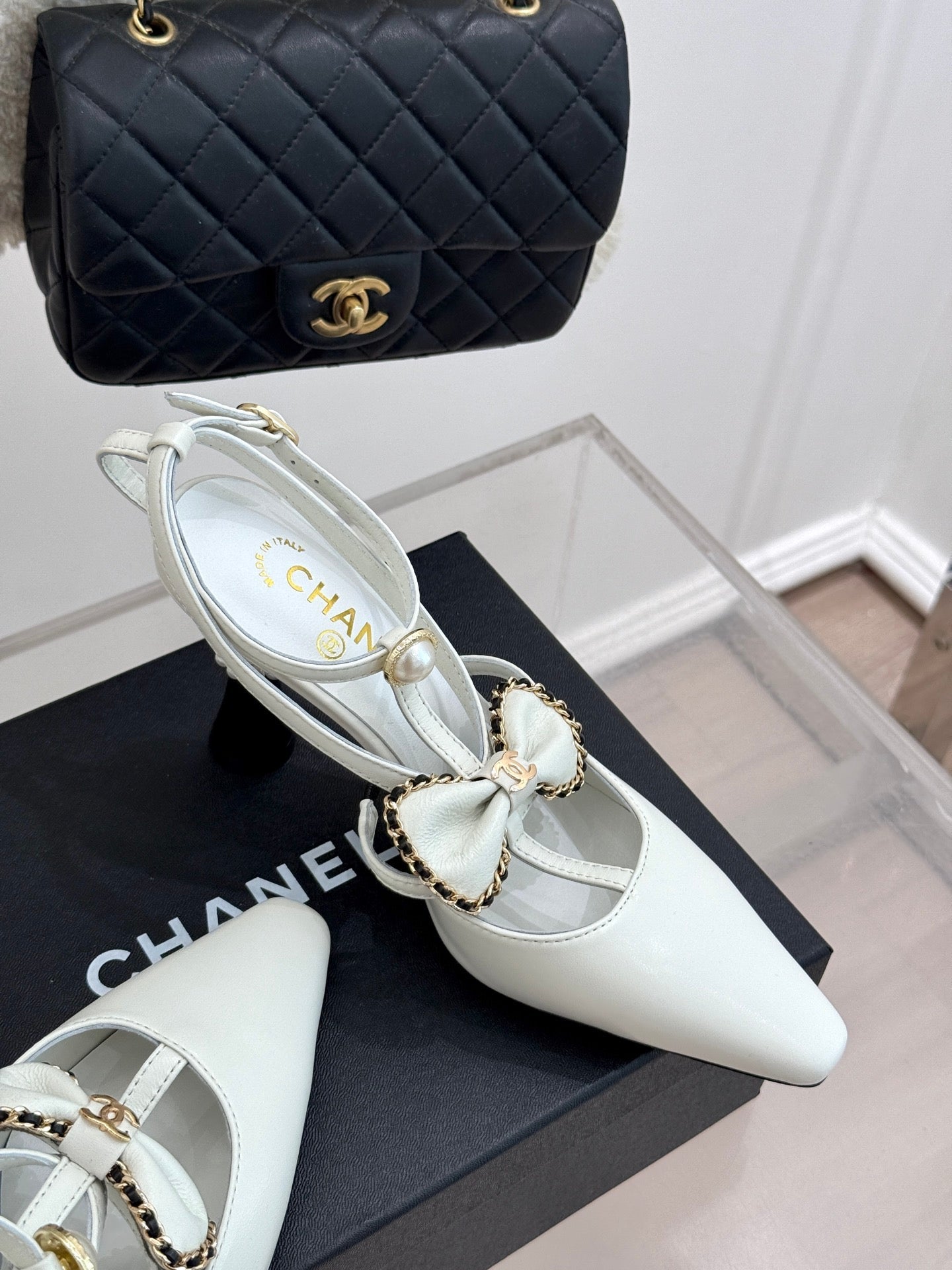 CHAIN BOW HIGH HEEL 8 CM SLINGBACKS IN WHITE SUEDE
