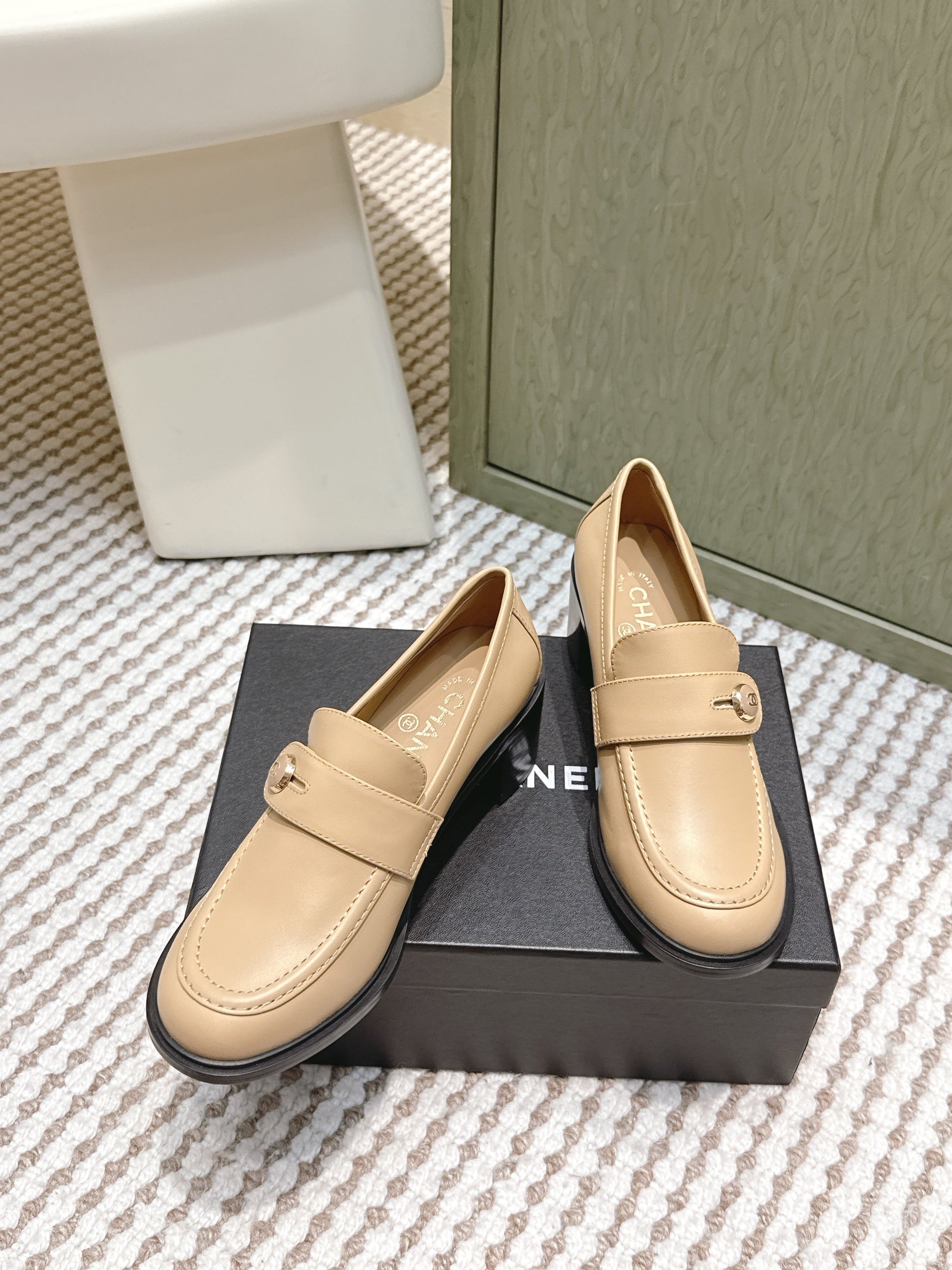 CHANEL 25S GODDESS MOCCASIN LOAFERS 65MM IN WARM BEIGE CALFSKIN GOLD HARDWARE