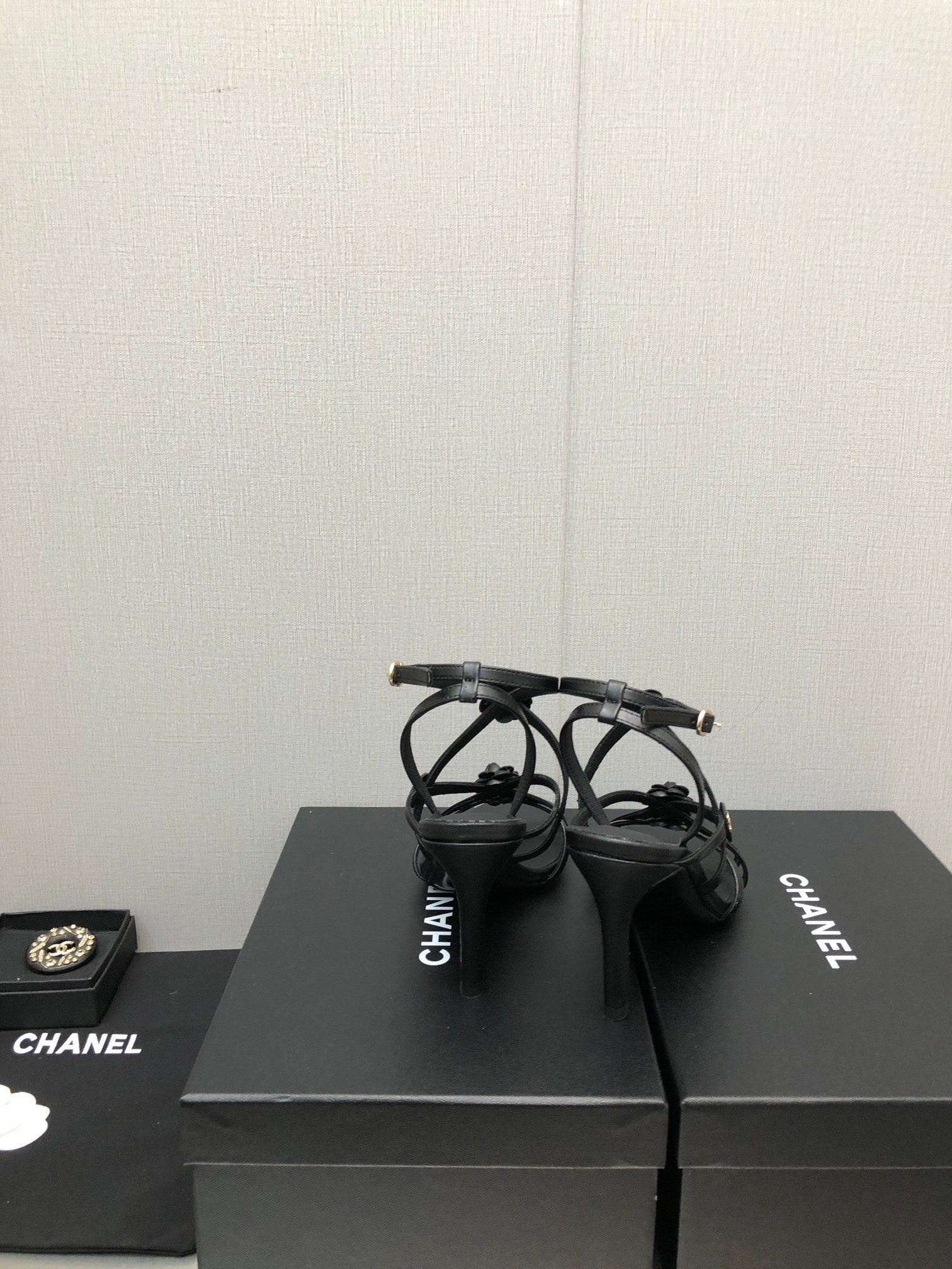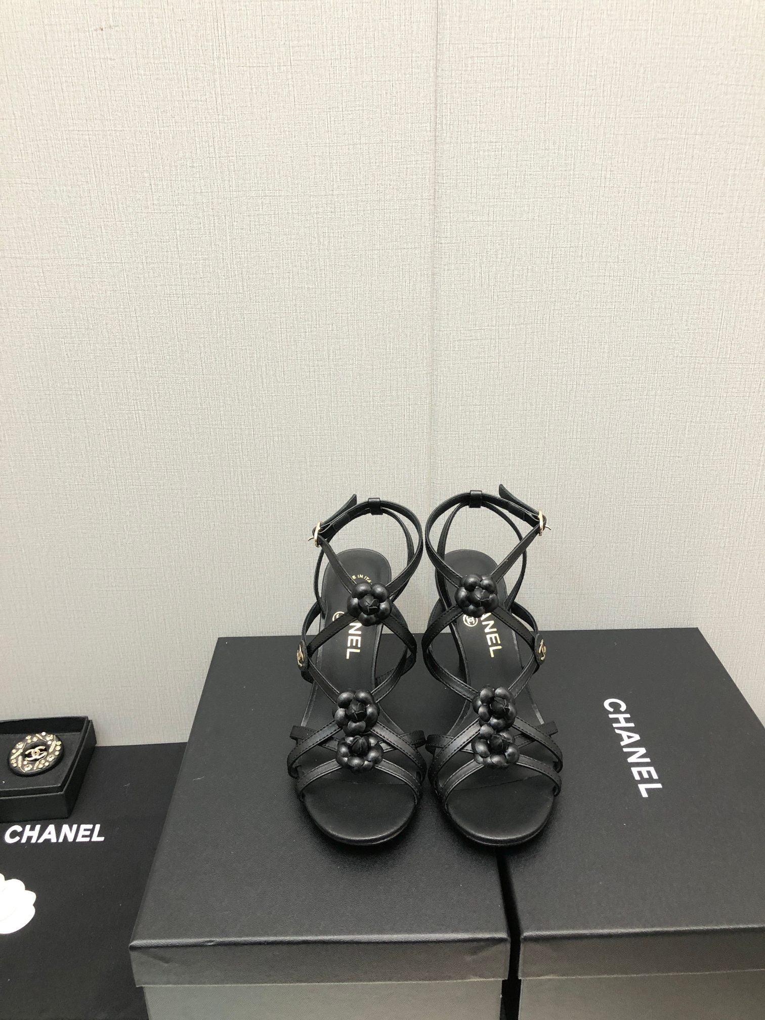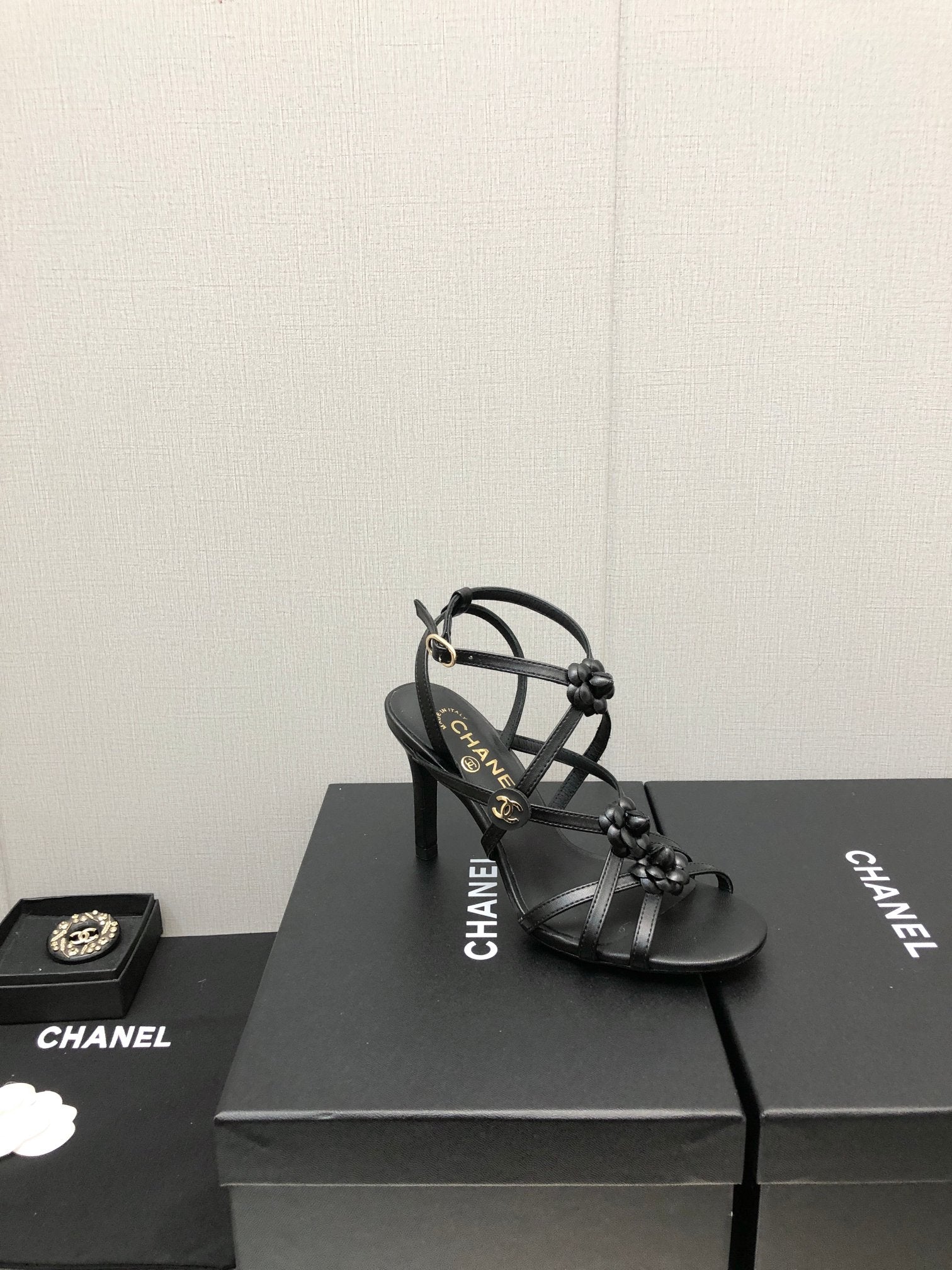 FLORAL HIGH HEEL SANDAL IN BLACK LAMBSKIN