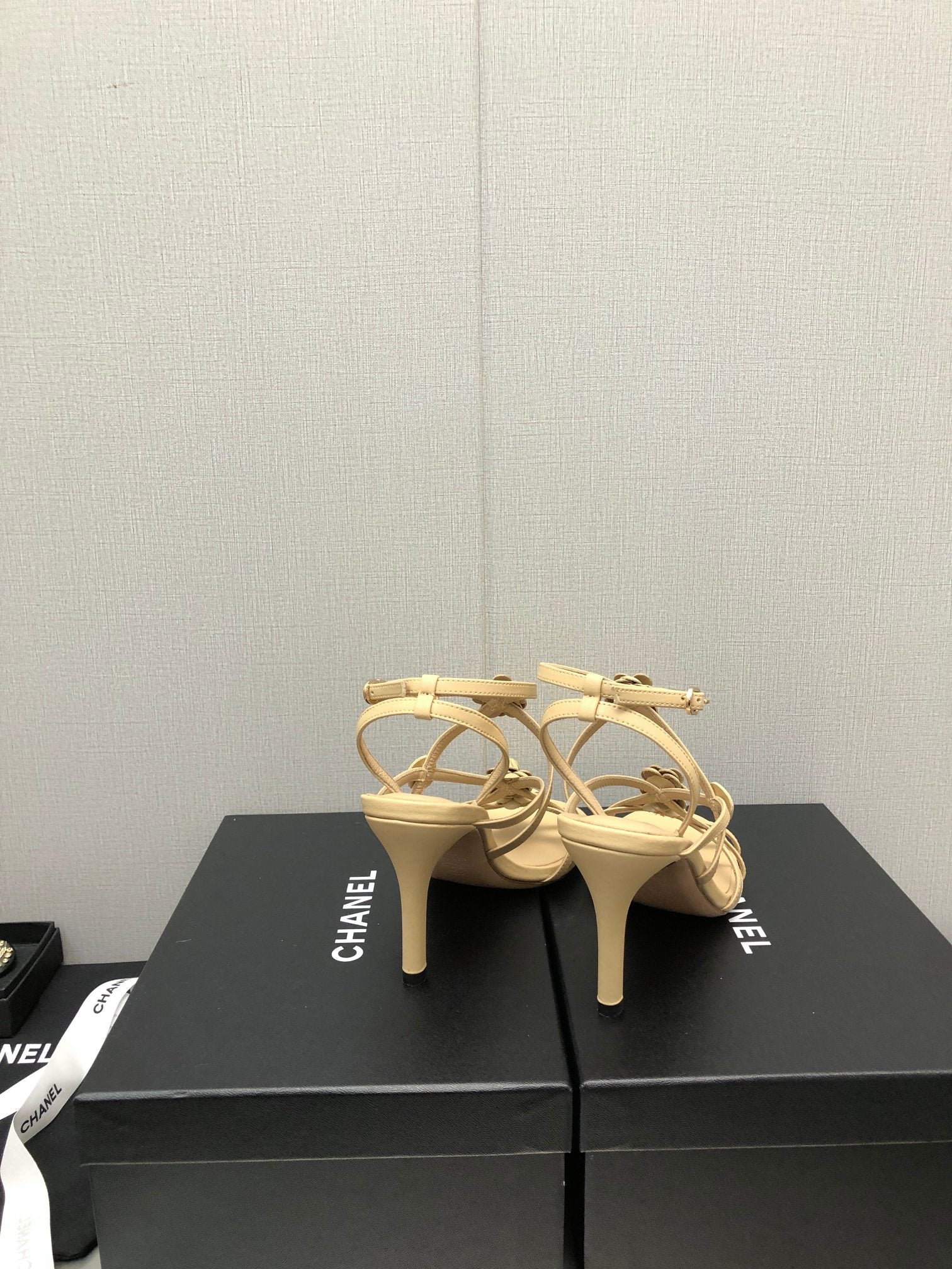 FLORAL HIGH HEEL SANDAL IN SAND YELLOW LAMBSKIN