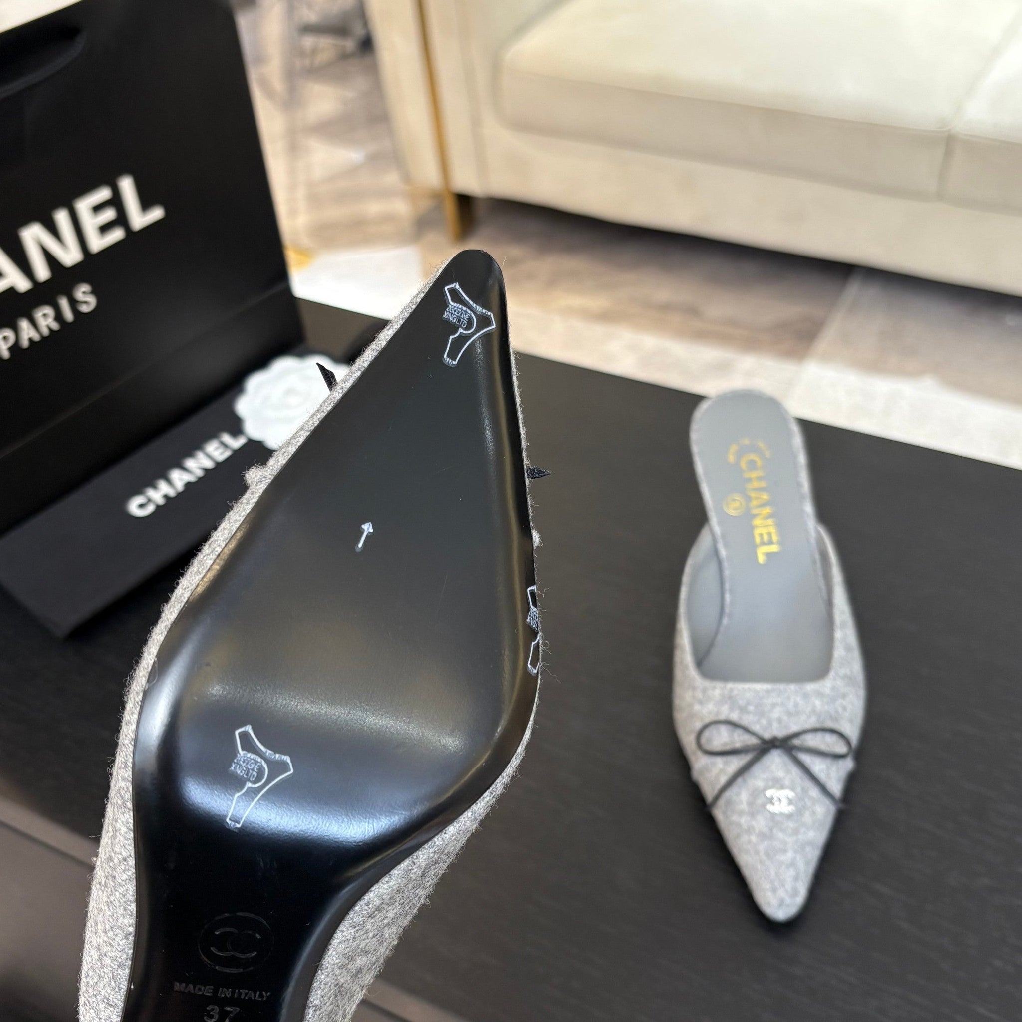 HIGH HEEL MULE 65 MM IN DOVE GRAY FELT COTH