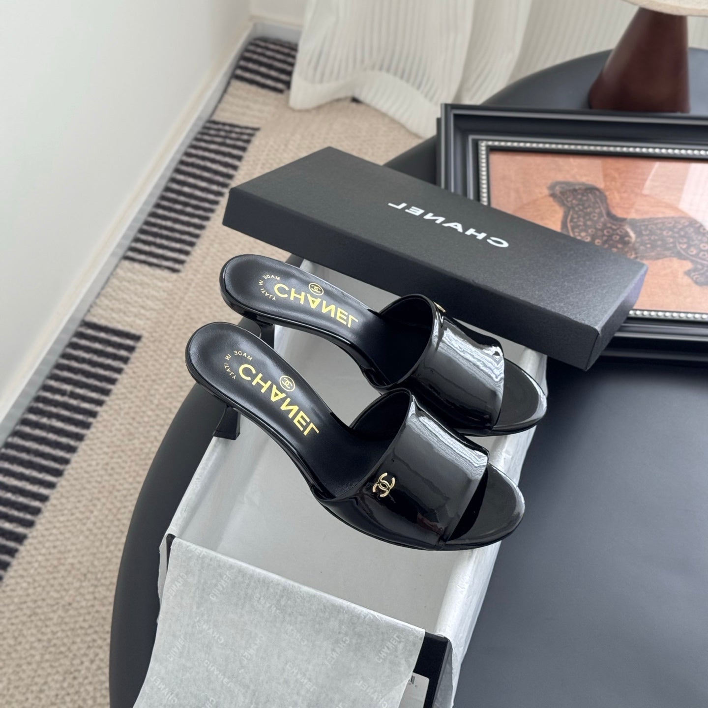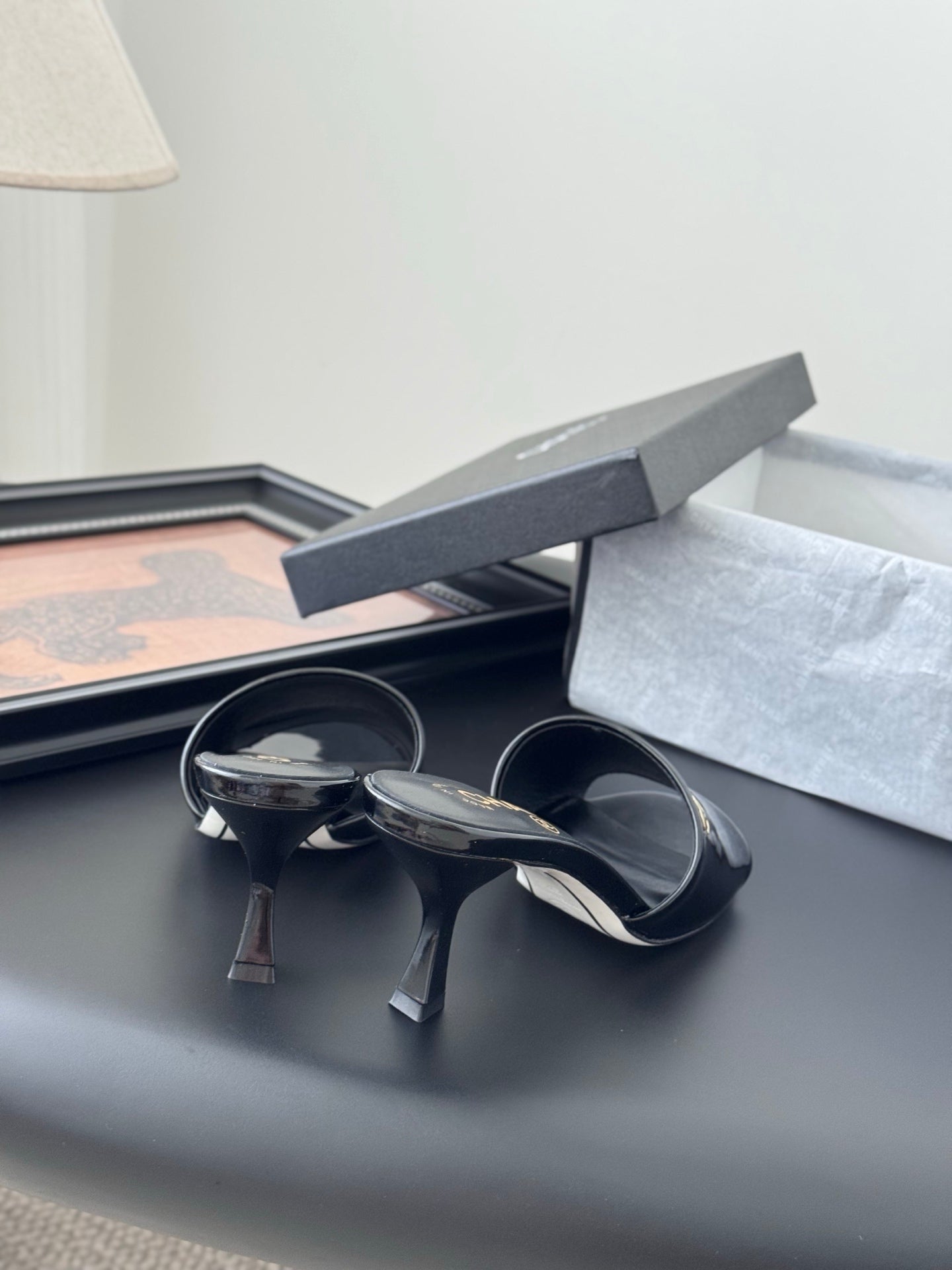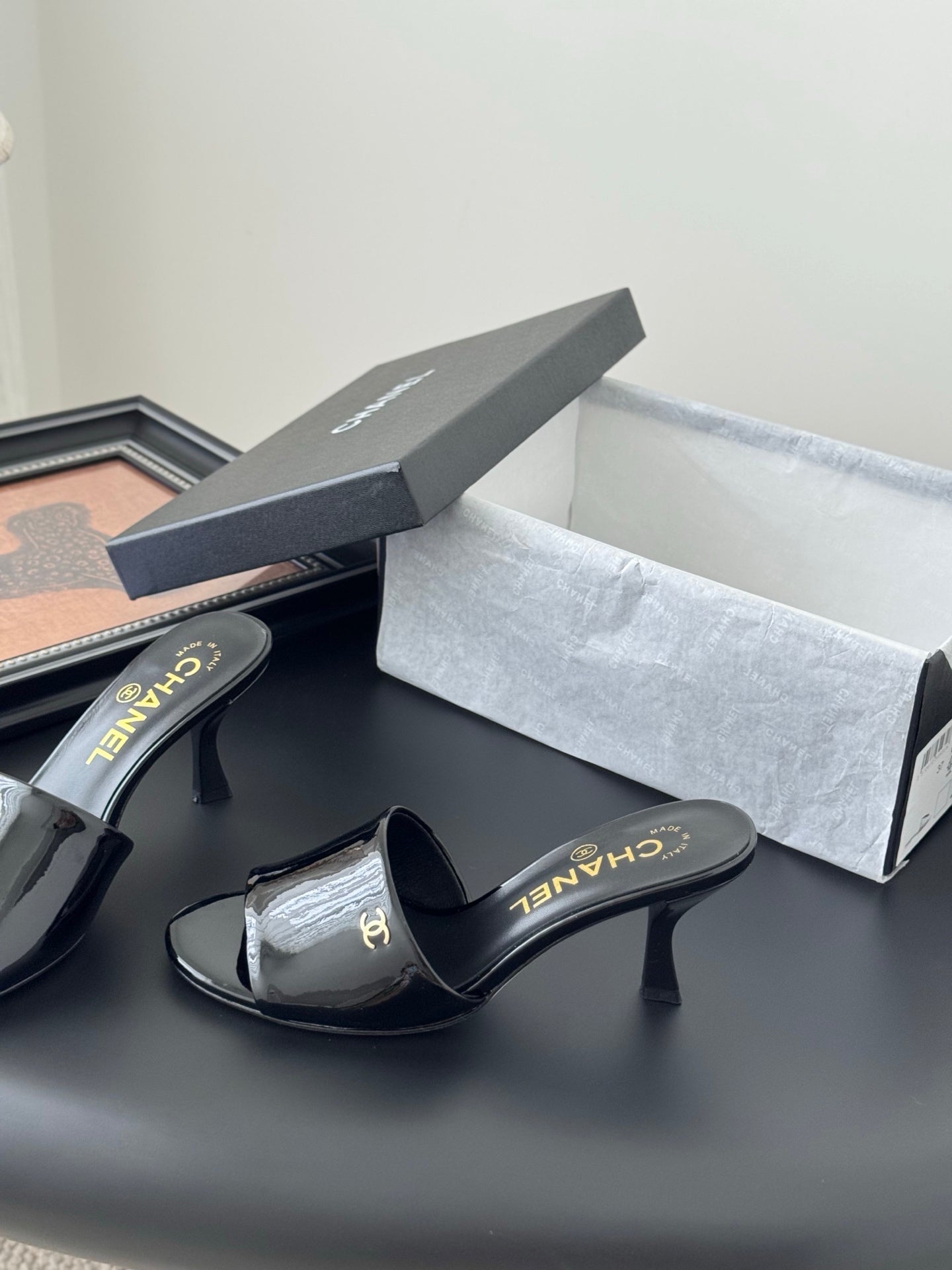 HIGH HEELS IN BLACK GLOSSY LEATHER