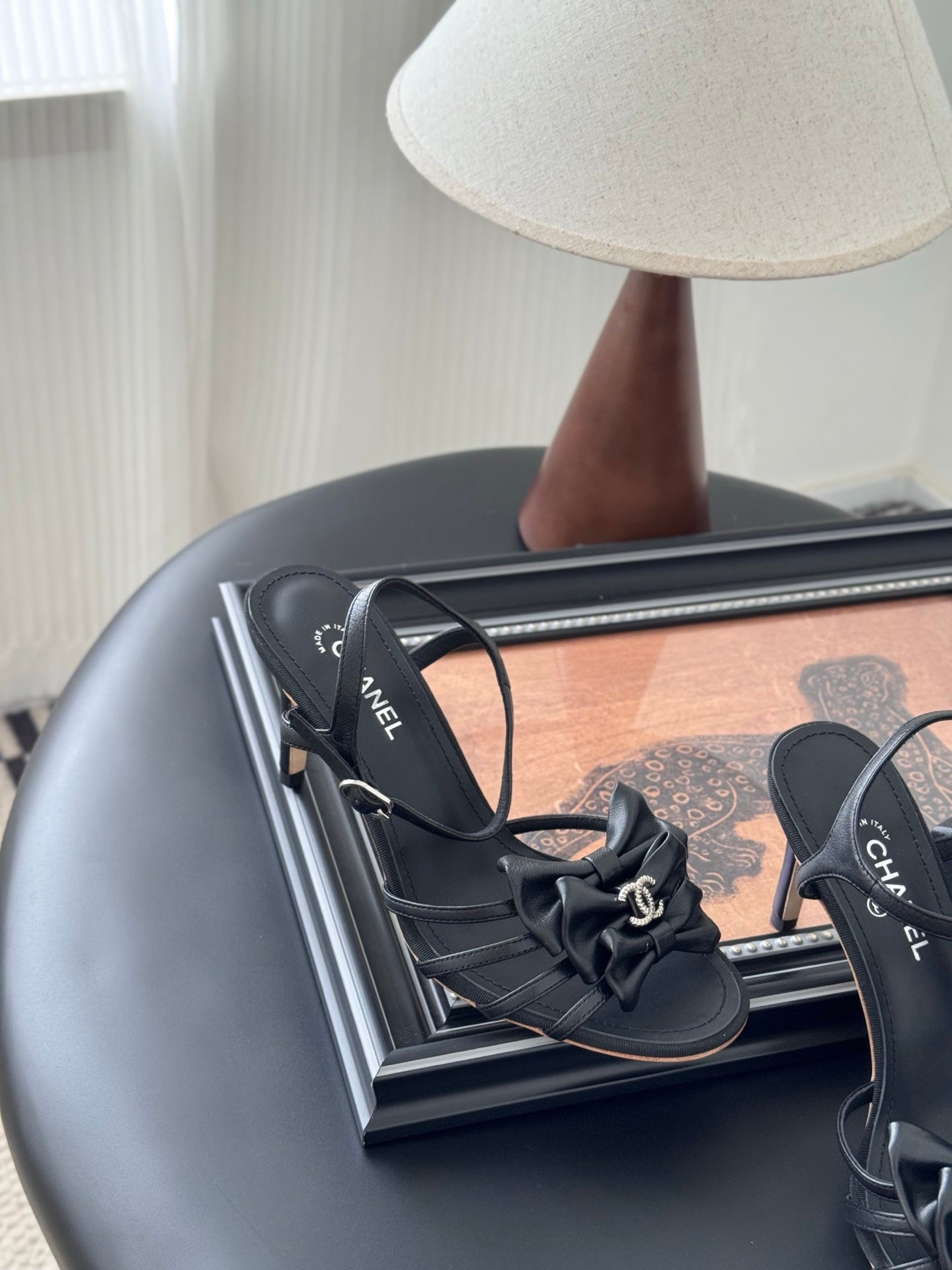 HIGH HEELS SANDALS IN BLACK SHEEPSKIN