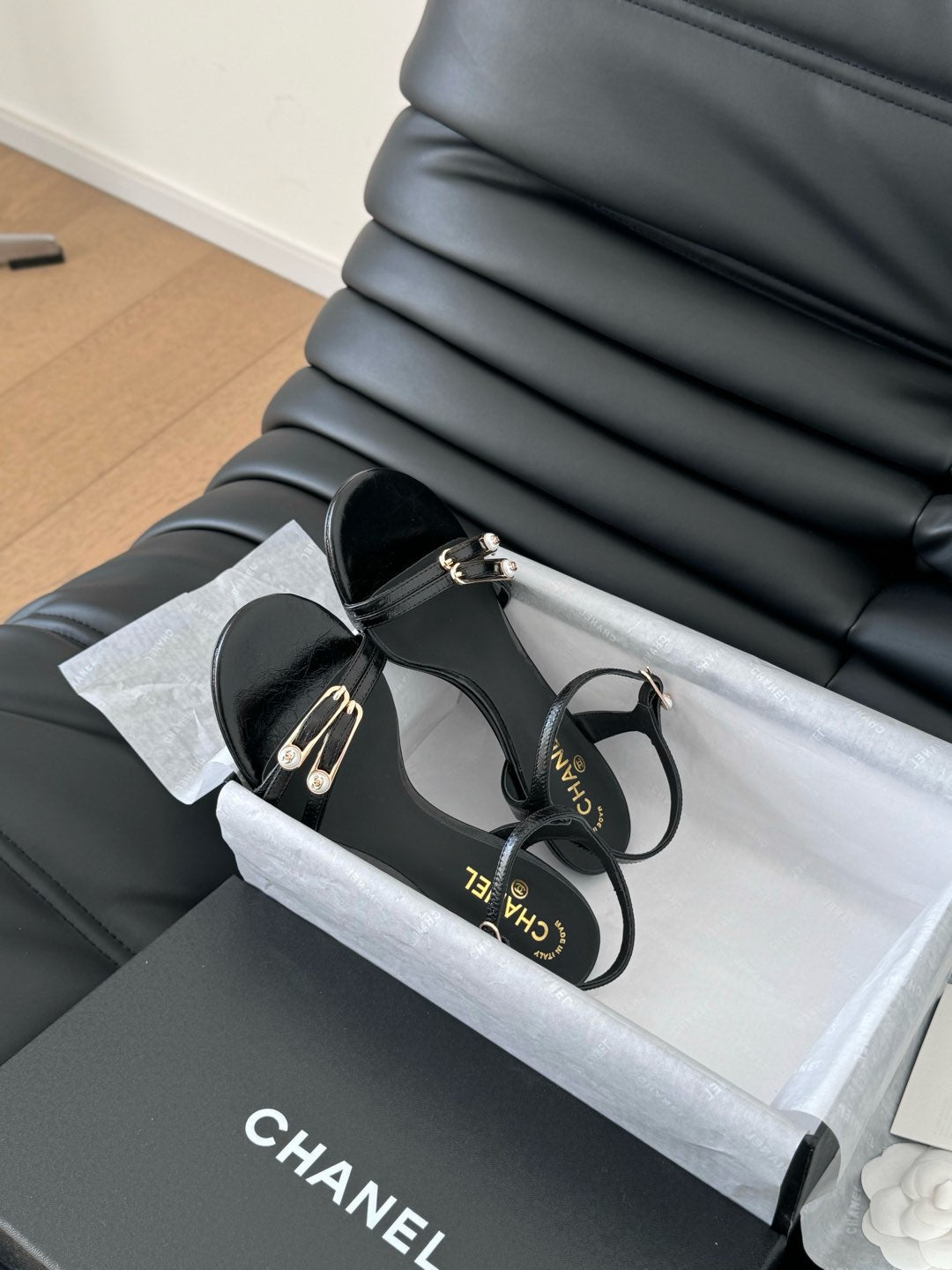 MID-HEEL 35 MM SANDAL IN BLACK SHEEPSKIN