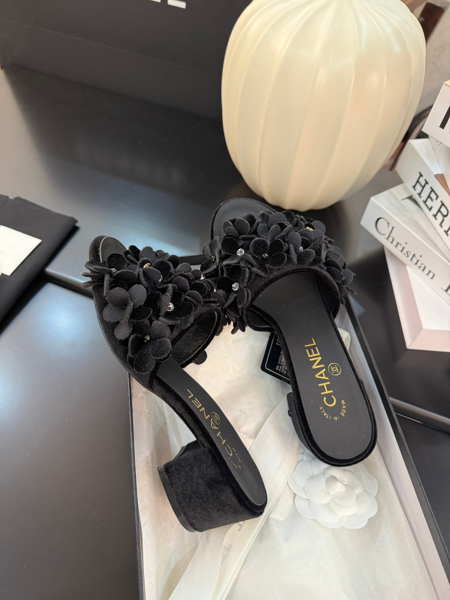 MID HEEL 45 MM MULE IN BLACK VELVET