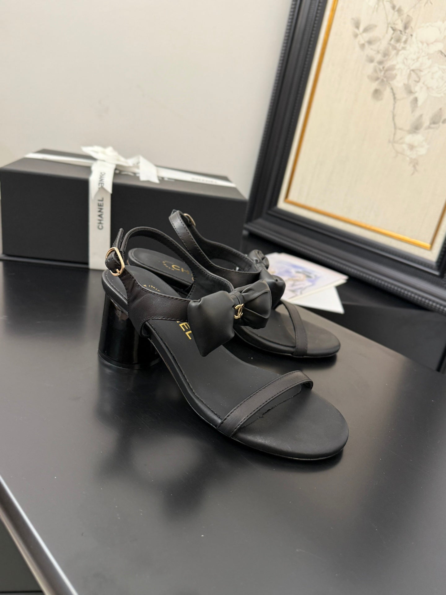 MID HEEL 45 MM SANDALS IN BLACK CALFSKIN