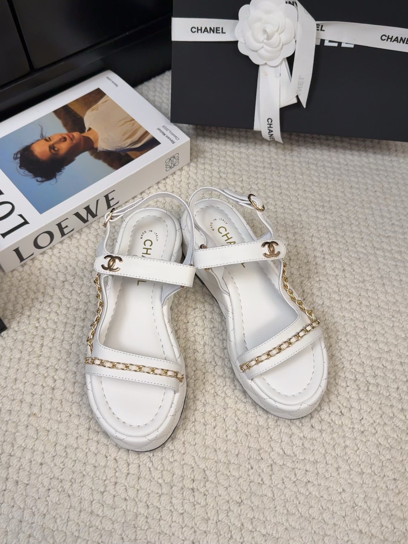 THICK-SOLED SANDALS 55 MM IN WHITE CALFSKIN
