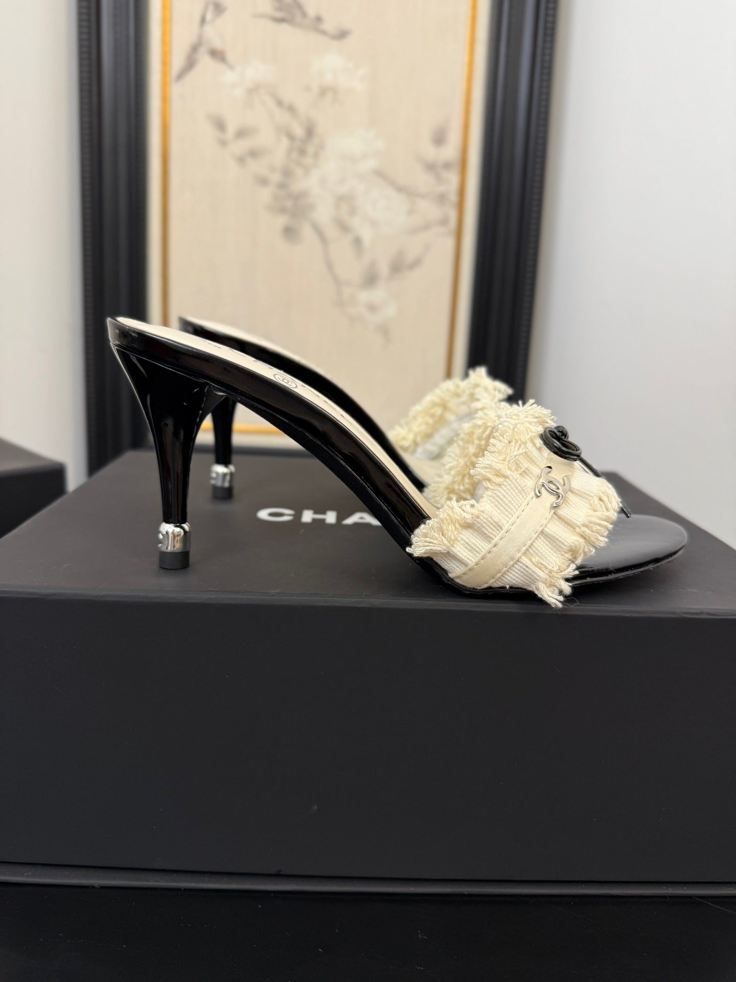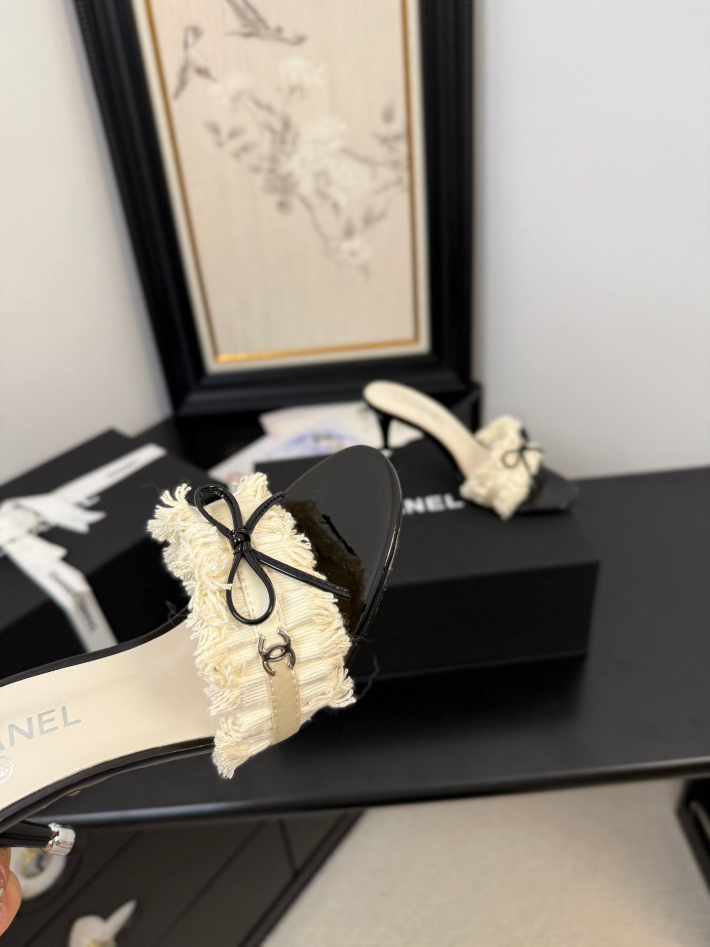 WHITE GROSGRAIN CANVAS BOW MULE SANDALS 90 MM