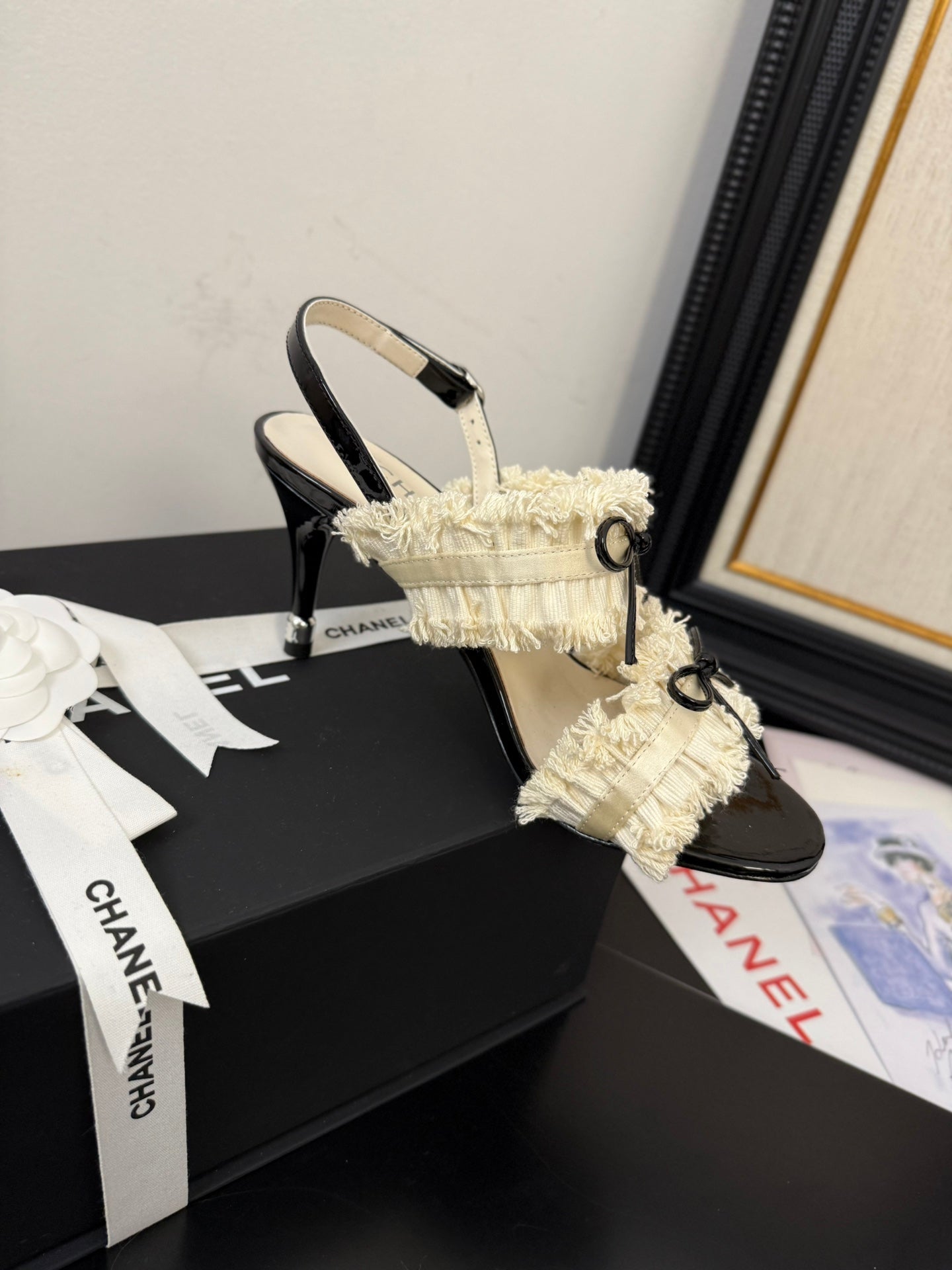 WHITE GROSGRAIN CANVAS BOW SLINGBACK SANDALS