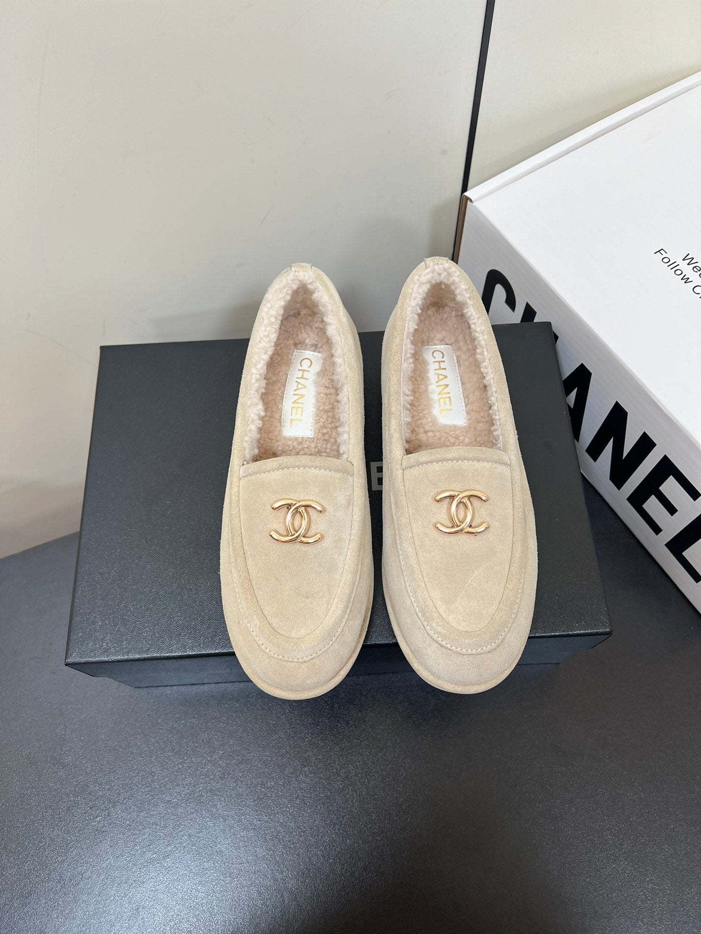 LOAFER IN BEIGE SUEDE AND SOLF FLEECE LINING
