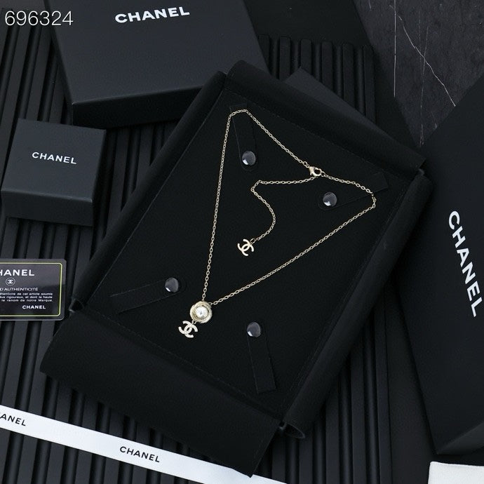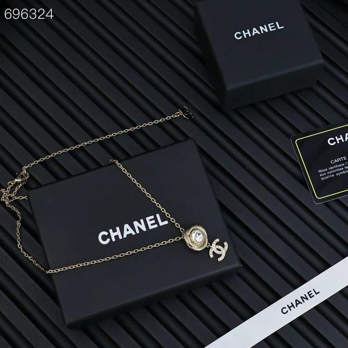 PENDANT NECKLACE IN GOLD TWISTED RIBBED DOUBLE C