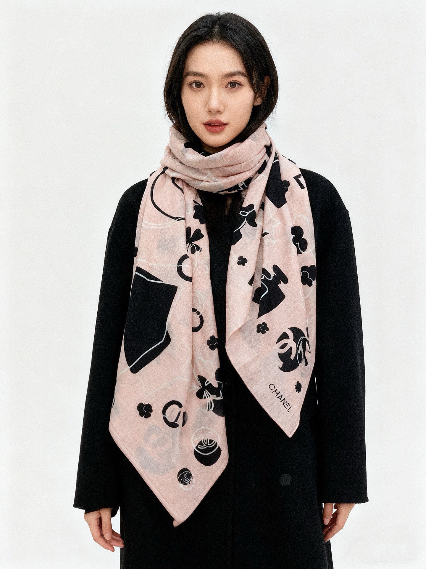 CHANEL 25S SCARF 140 IN SILK AND CASHMERE 932003