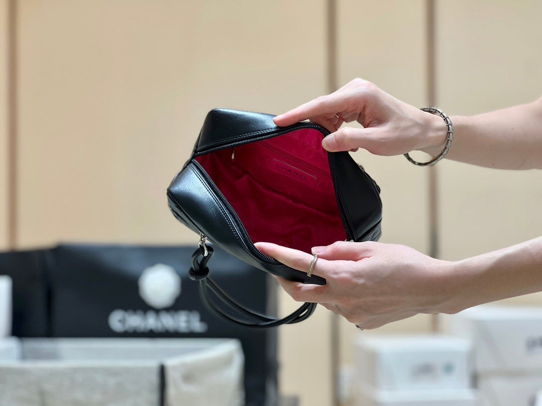 25S CHANEL CAMBON BOSTON BAG 27 IN FULL BLACK CALFSKIN