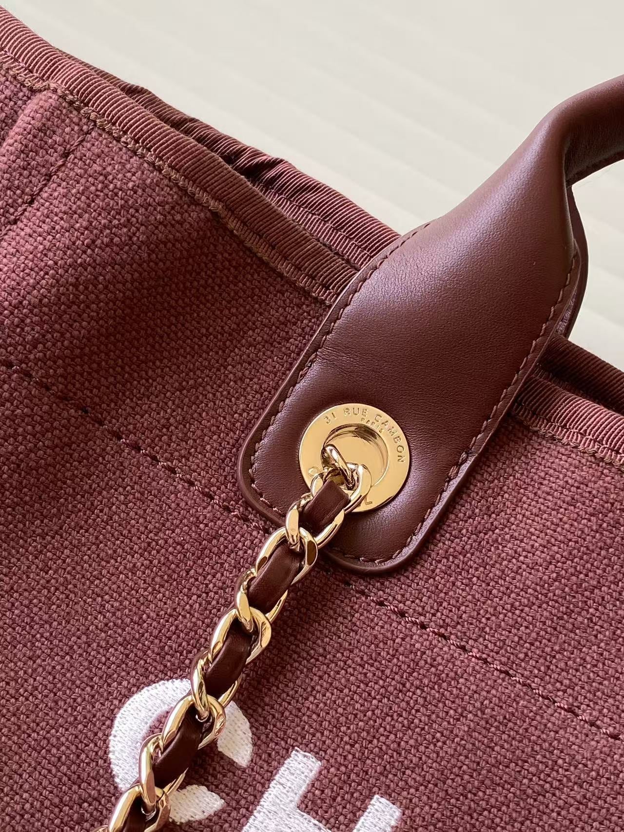 CHANEL 25S TOTE BAG 33 IN DARK RED CANVAS