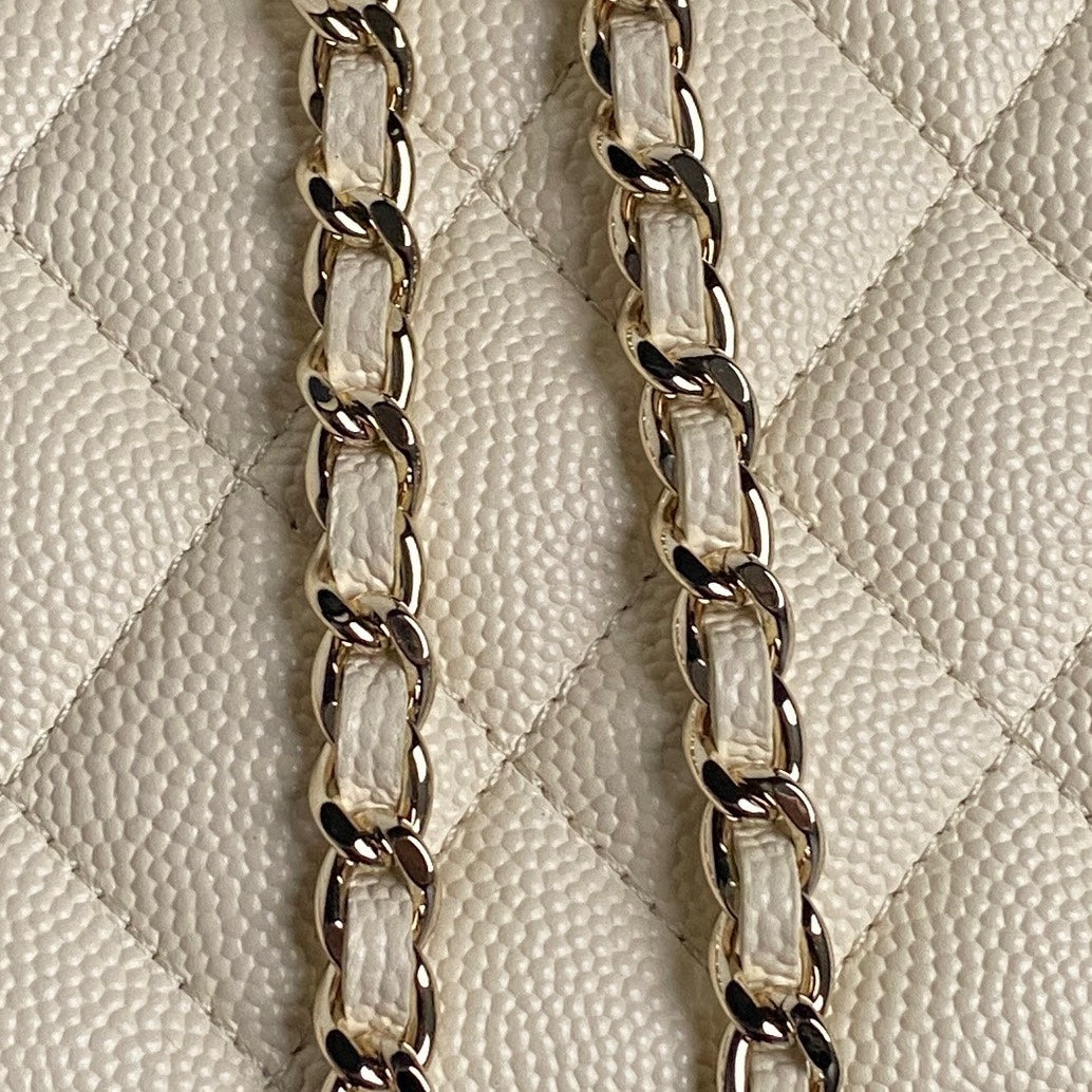 COSMETIC BAG 19 IN CREAM GRAINED CALFSKIN GOLD HARDWARE