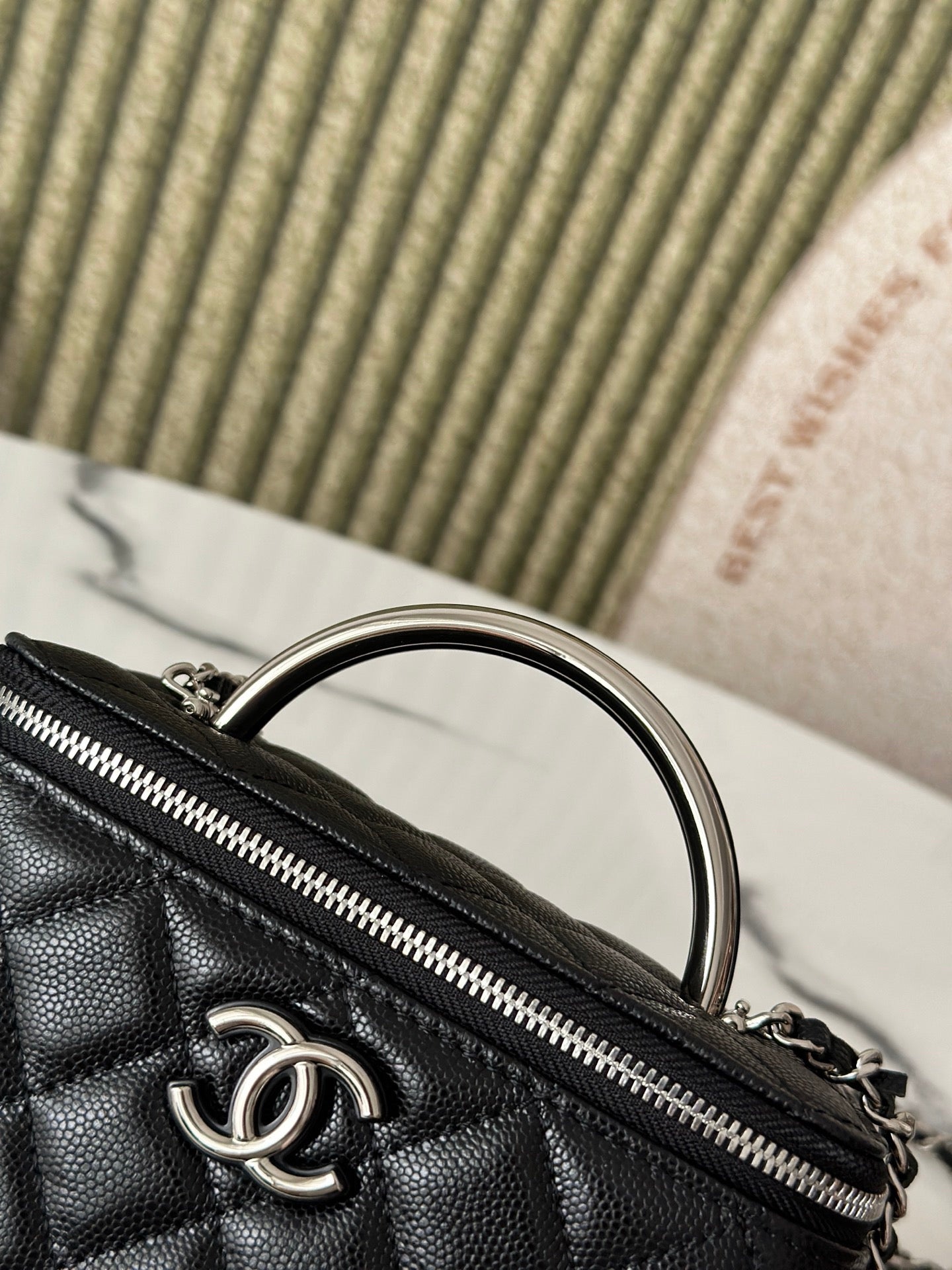 25P VANITY 17 CAVIAR WITH HANDLE METAL IN BLACK CALFSKIN SILVER HARDWARE