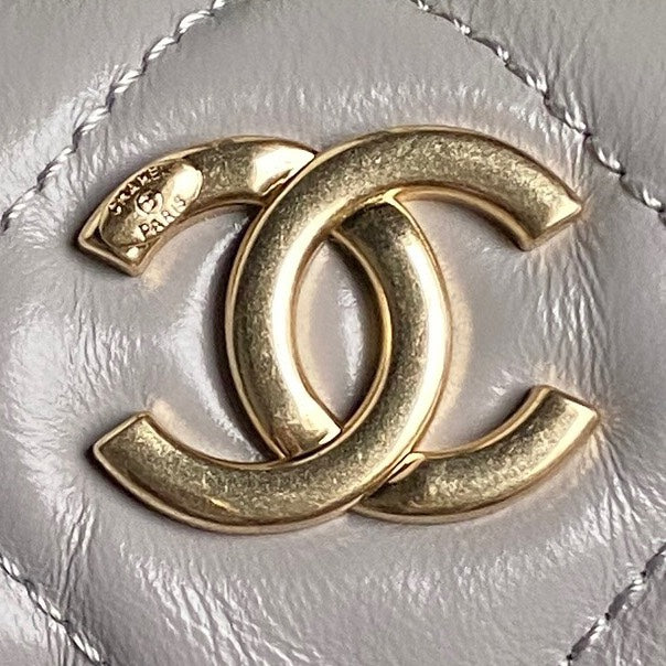 BOWLING BAG 29 IN GREY CALFSKIN GOLD HARDWARE