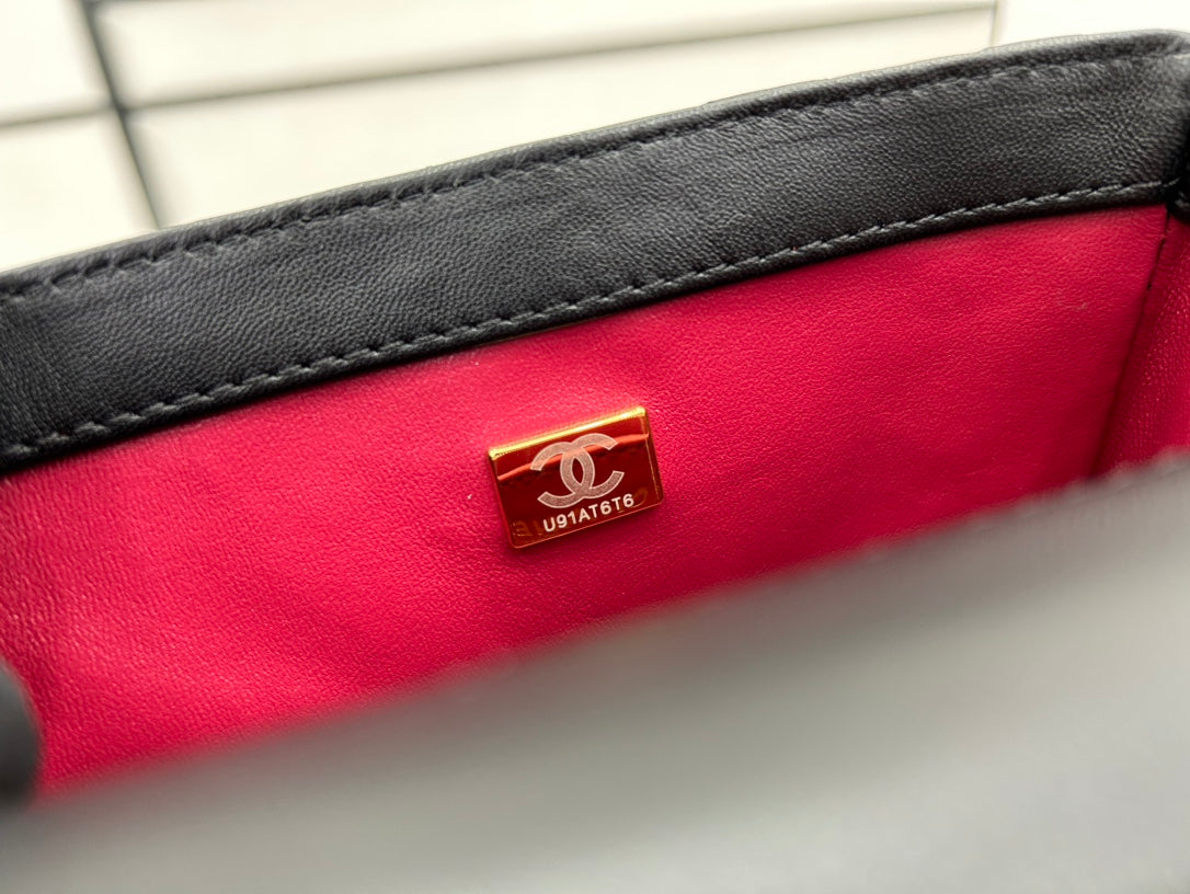CC SMALL 17 FLAP BAG IN BLACK CALFSKIN GOLD HARDWARE