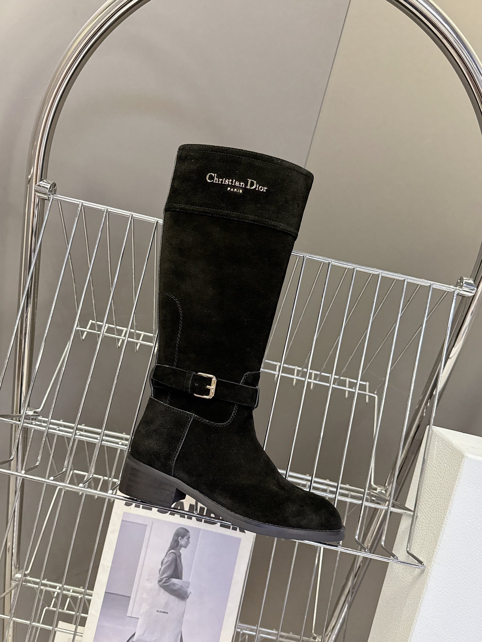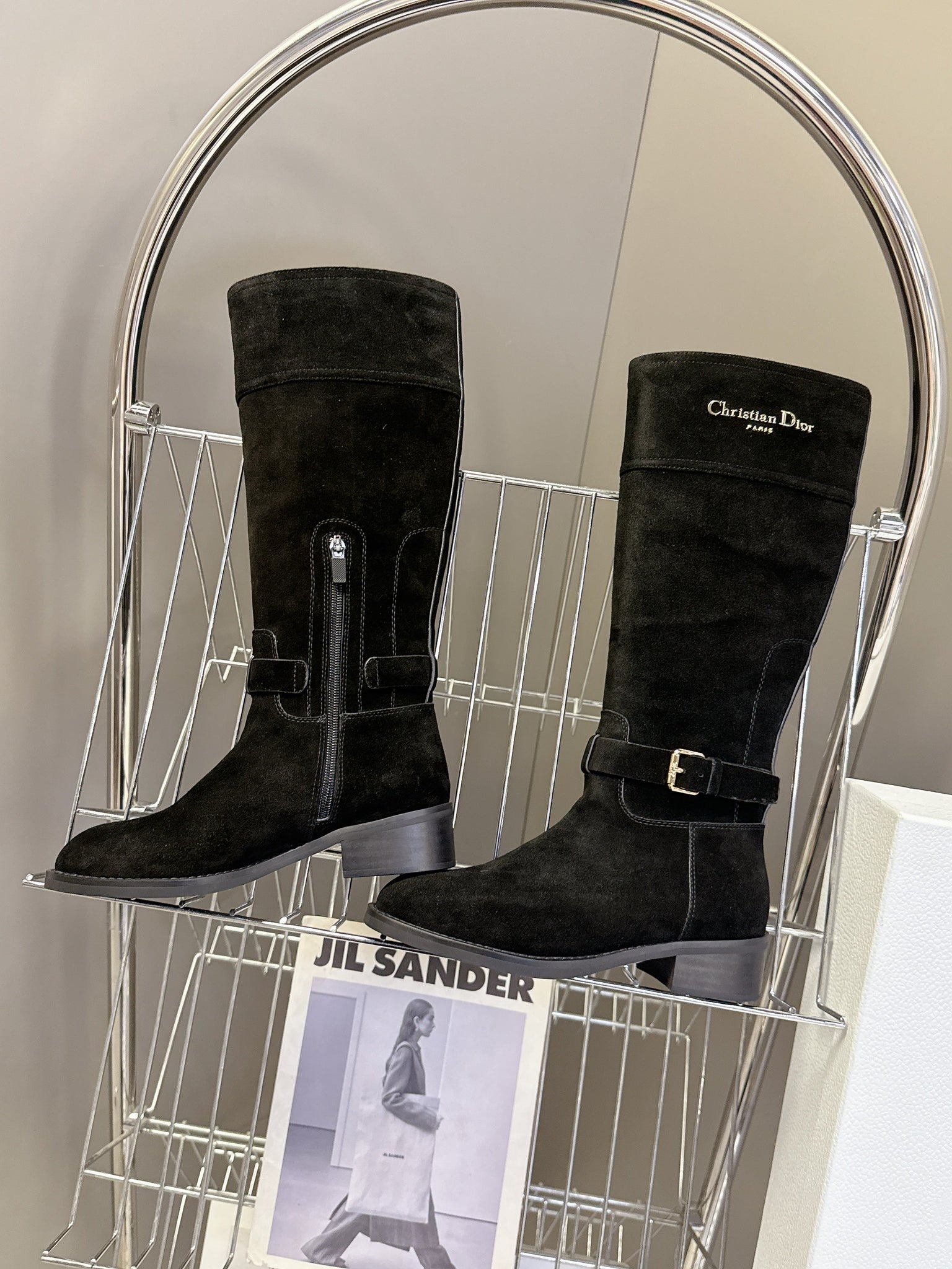 DIOR 25S BLACK HIGH BOOTS IN BLACK SUEDE