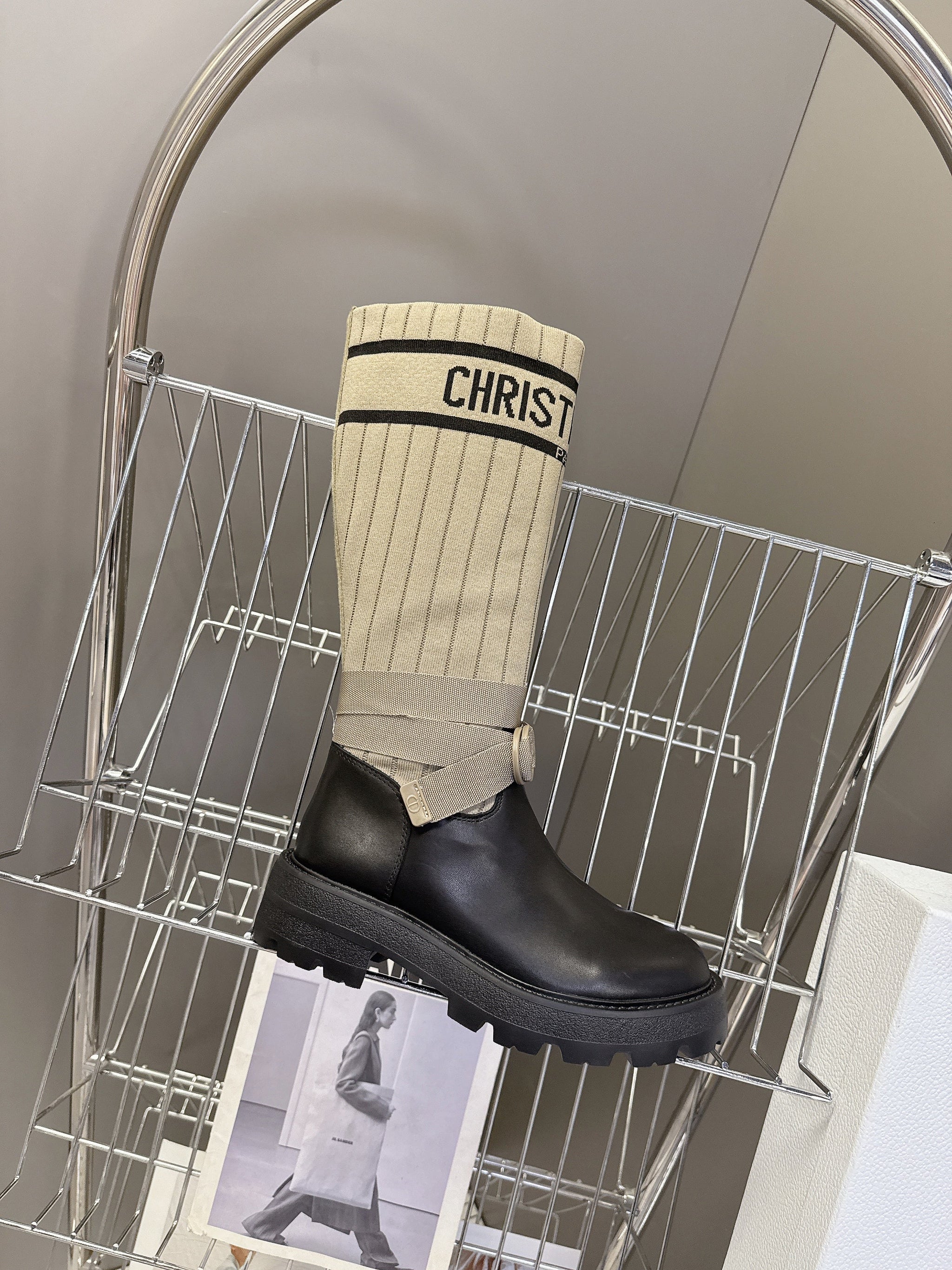 DIOR 25S D-MAJOR ANKLE BOOTS IN BLACK CALFSKIN AND BEIGE FABRIC