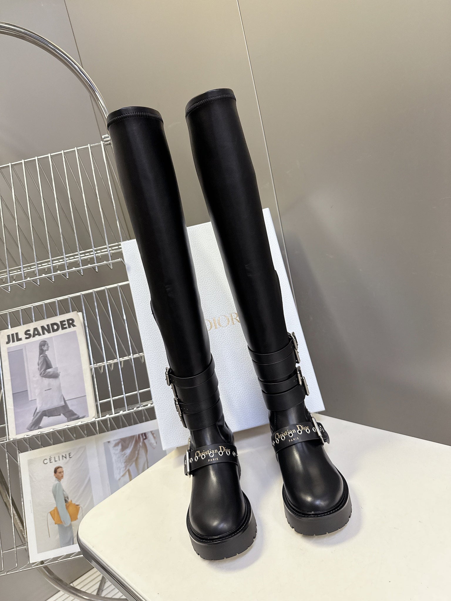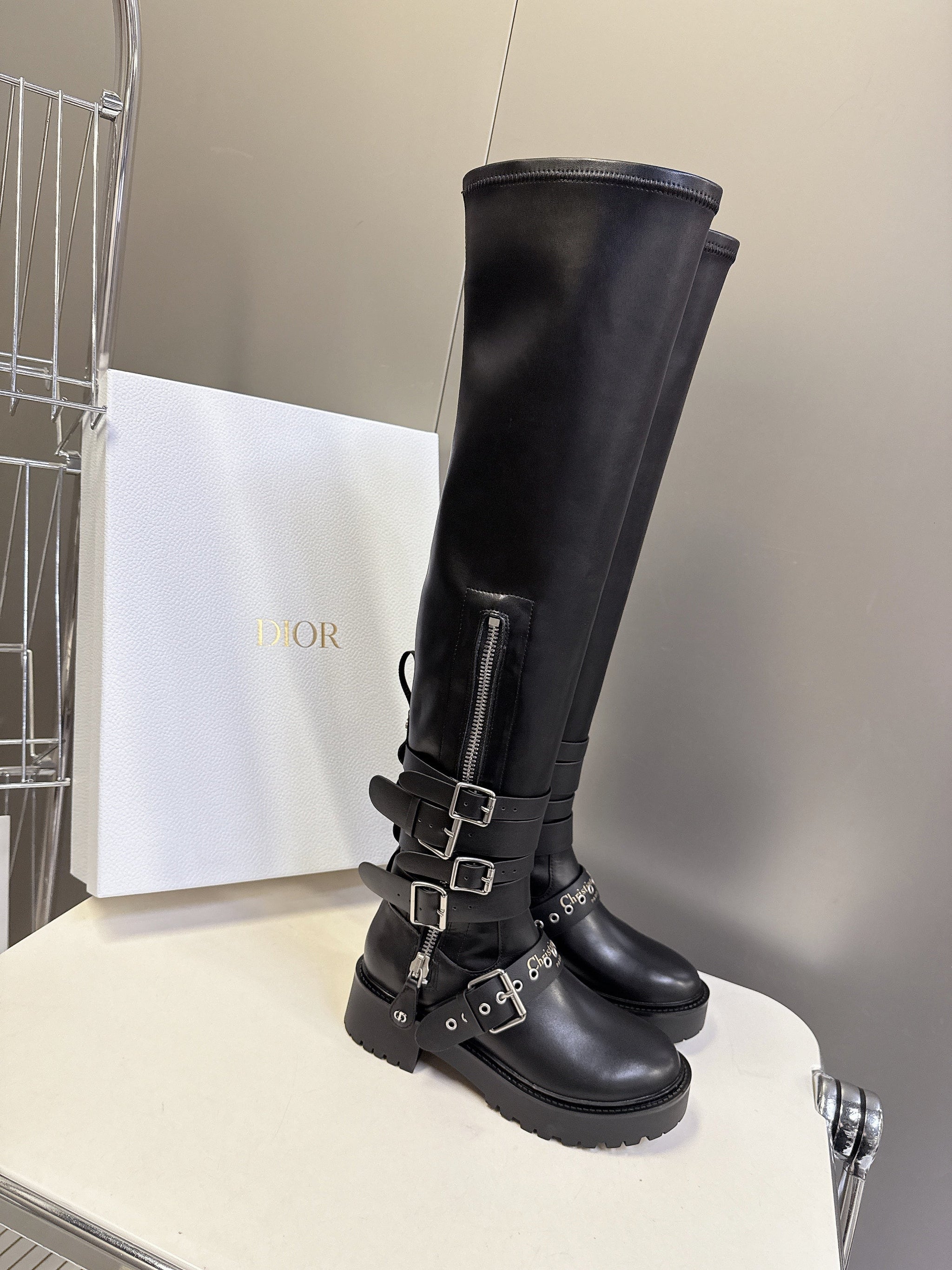 DIOR D-FIGHT BOOT 25S IN BLACK CALFSKIN WITH SILVER HARDWARE